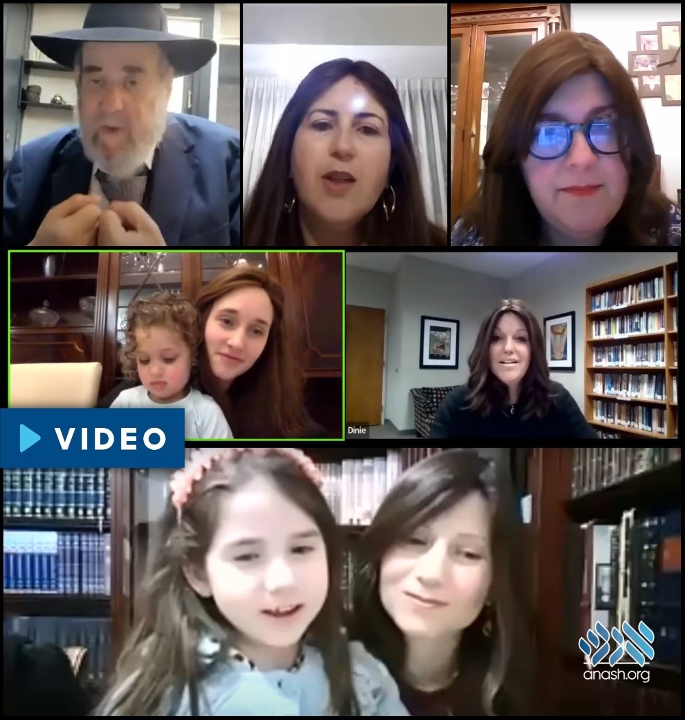 The incredible emuna displayed by the women was highlighted by the singing and home art and crafts of a young eight-year-old shlucha, Sterna Sara Levitanksy. She has used the song, about trust in Hashem and never being alone, to comfort herself as she hides in the bunker in her home, loud explosions shaking the house above. The striking image deeply moved the virtual crowd.