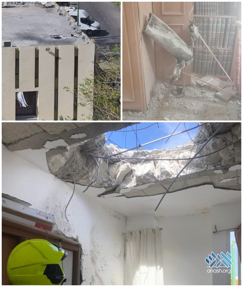 A shul in Ashkelon suffered a direct hit from a Hamas missile causing extensive damage, while a private residence was struck by a rocket in Ashdod. There are no reports of injuries in either incident.