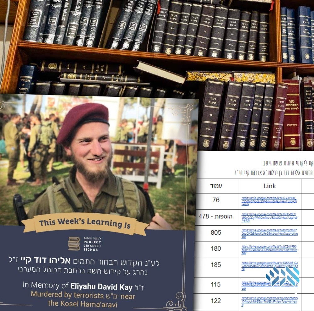 Initiatives to increase the study of Likkutei Sichos were launched and dedicated to the memory of Eli Kay hy”d, who was murdered in a terror attack near the Kosel on Sunday.