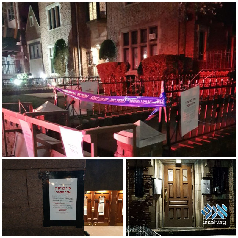 As New York increases its restrictions of public gatherings, notices with warnings of arrest have been posted at 770, forbidding gatherings in or around the buildings.