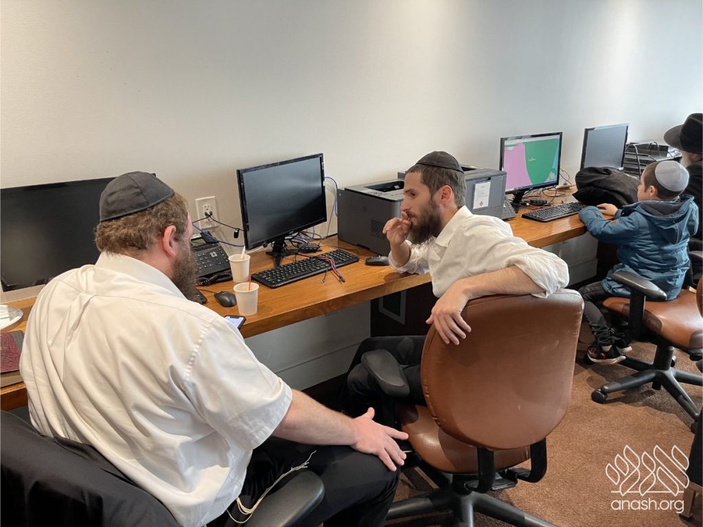 The Shluchim Lounge is ready and waiting with workspaces complete with computers, phones and Wi-Fi Internet access.