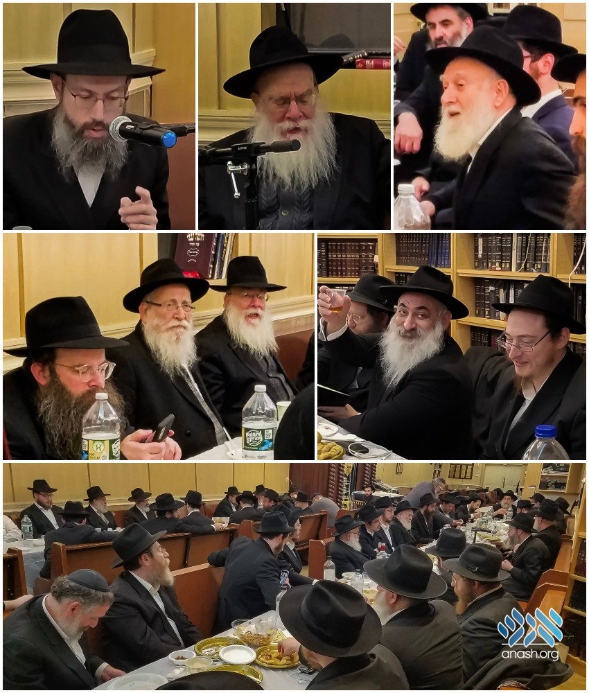 The farbrengen was led by Rabbi Shmuel Bluming, maggid shiur in Oholei Torah, and Rabbi Tzvi Telsner, rov in Menbourne Australia.