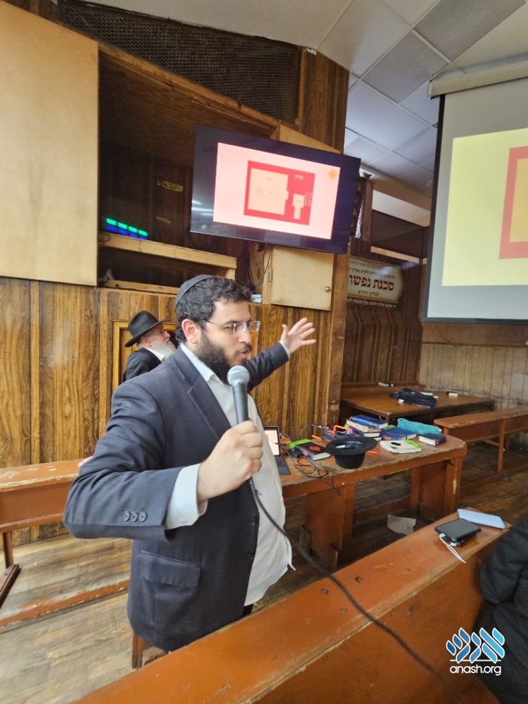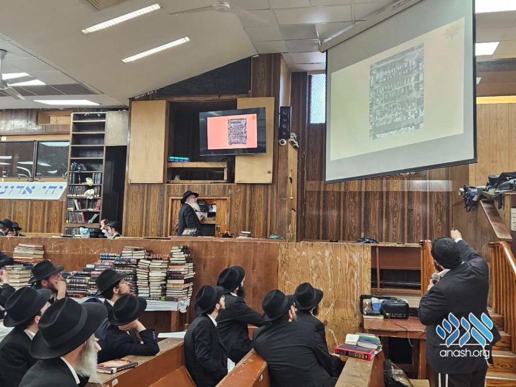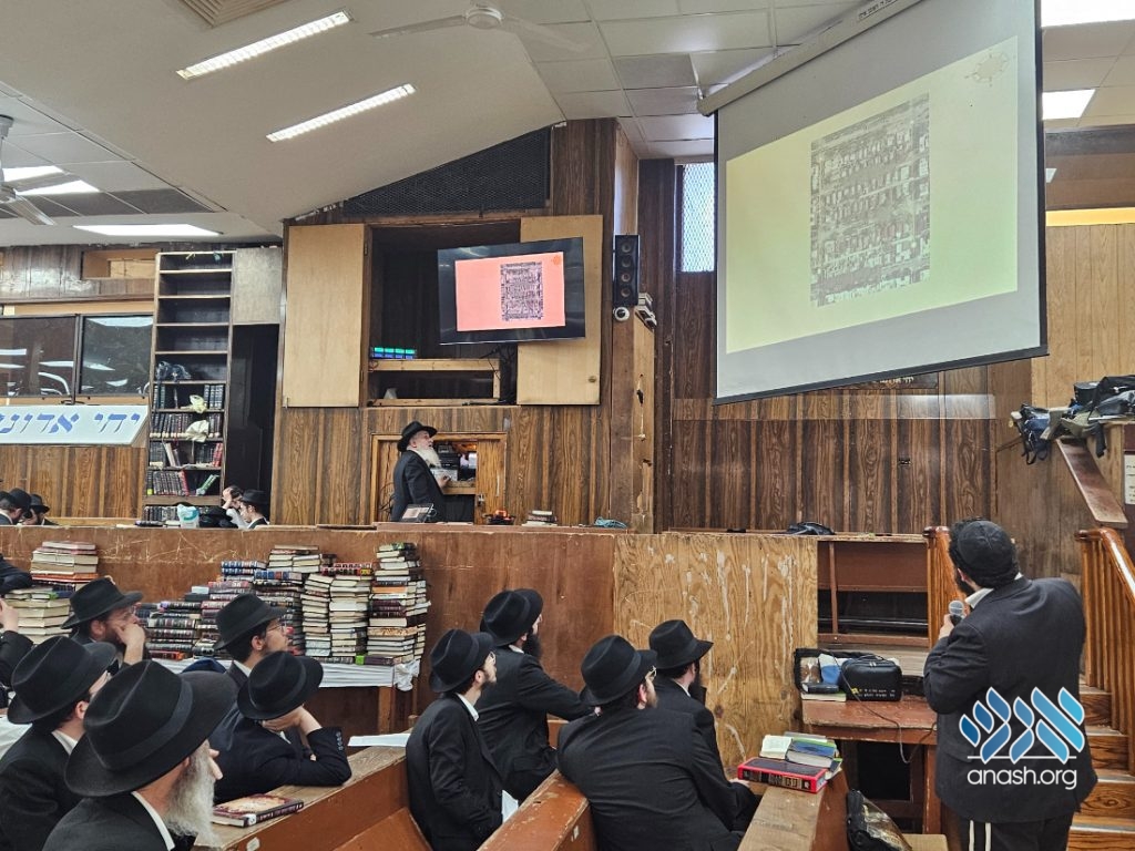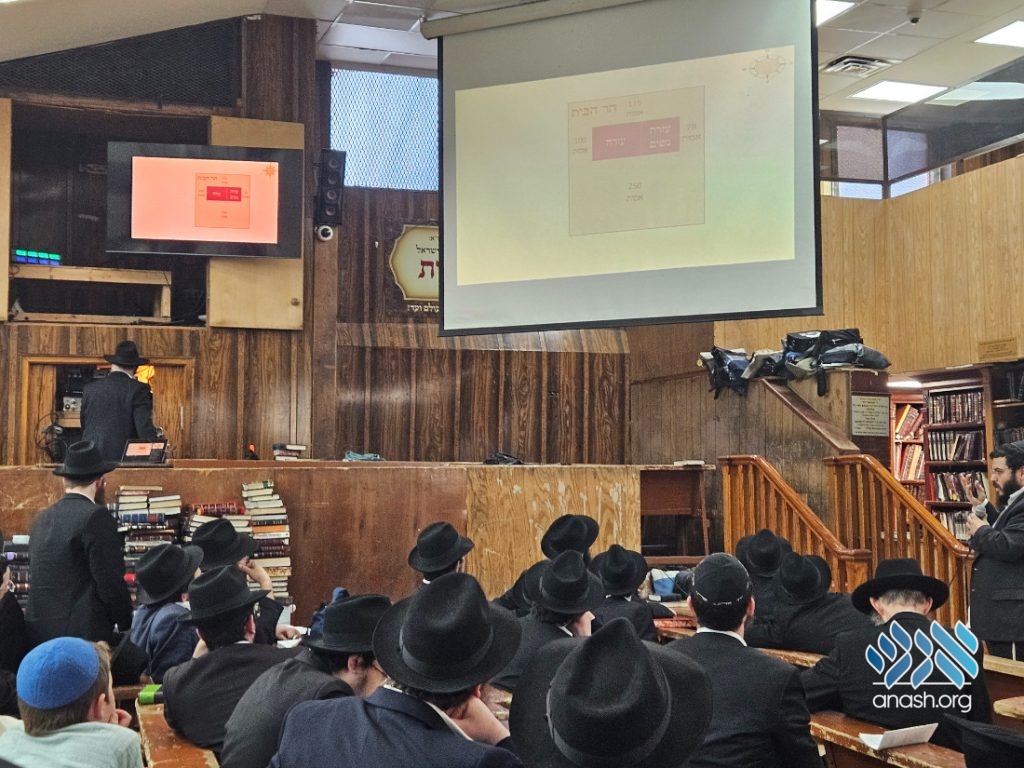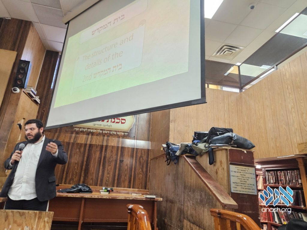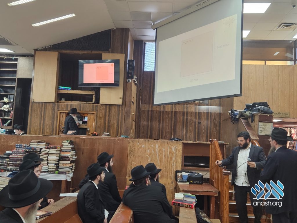 A special visual presentation on the Beis Hamikdash by Rabbi Chananya Hoffinger of the Beis Hamikdash Academy followed shachris and kinos on Tisha B’Av day, and a siyum on mesechta Semachos by Rabbi Yosef Yitzchok Kratz followed Mincha.