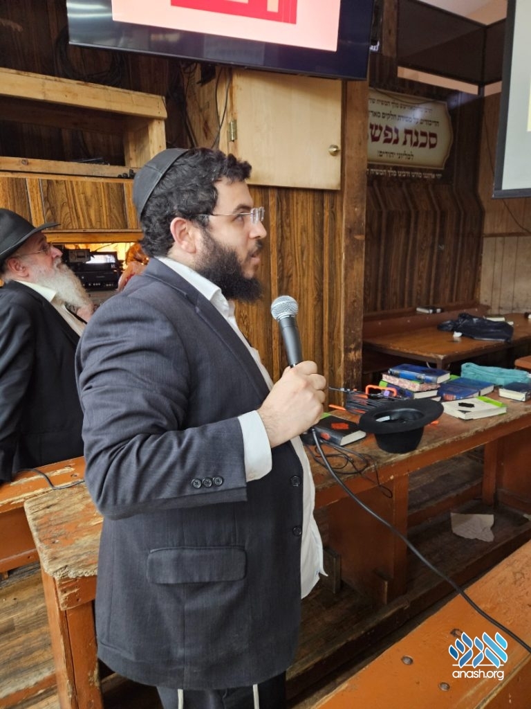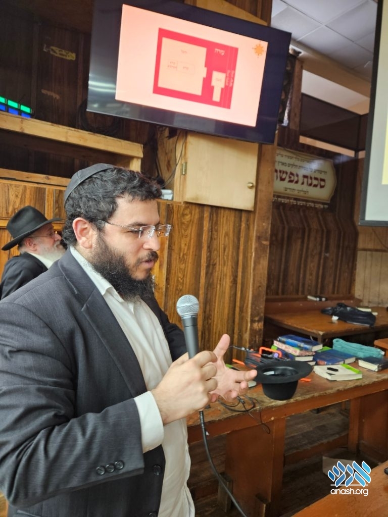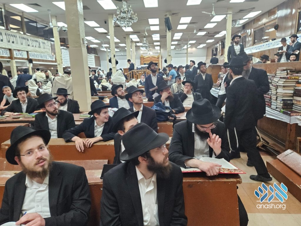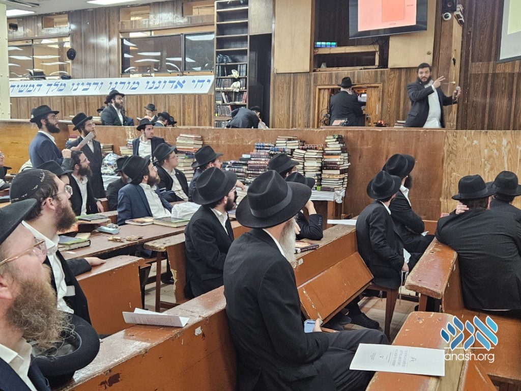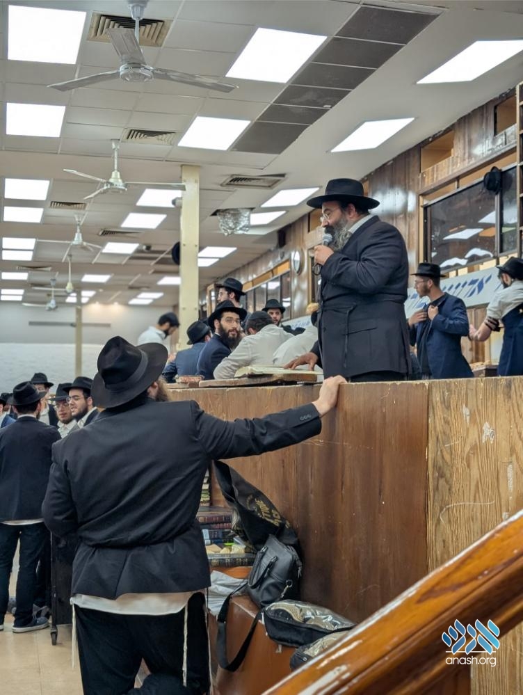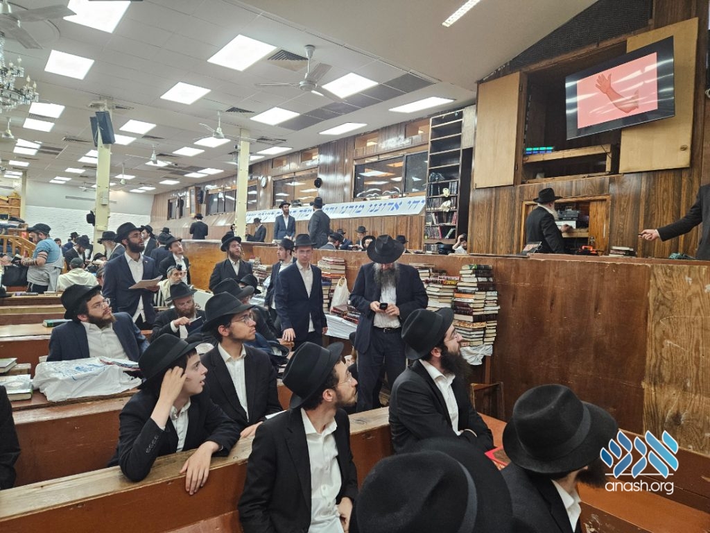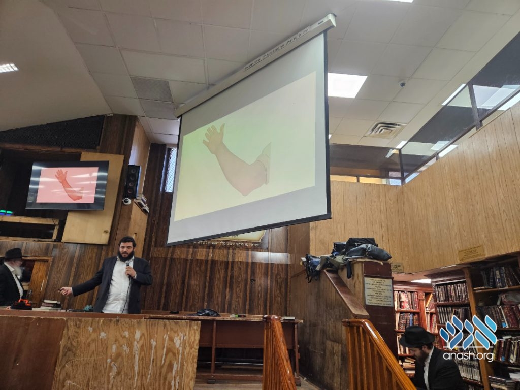 A special visual presentation on the Beis Hamikdash by Rabbi Chananya Hoffinger of the Beis Hamikdash Academy followed shachris and kinos on Tisha B’Av day, and a siyum on mesechta Semachos by Rabbi Yosef Yitzchok Kratz followed Mincha.