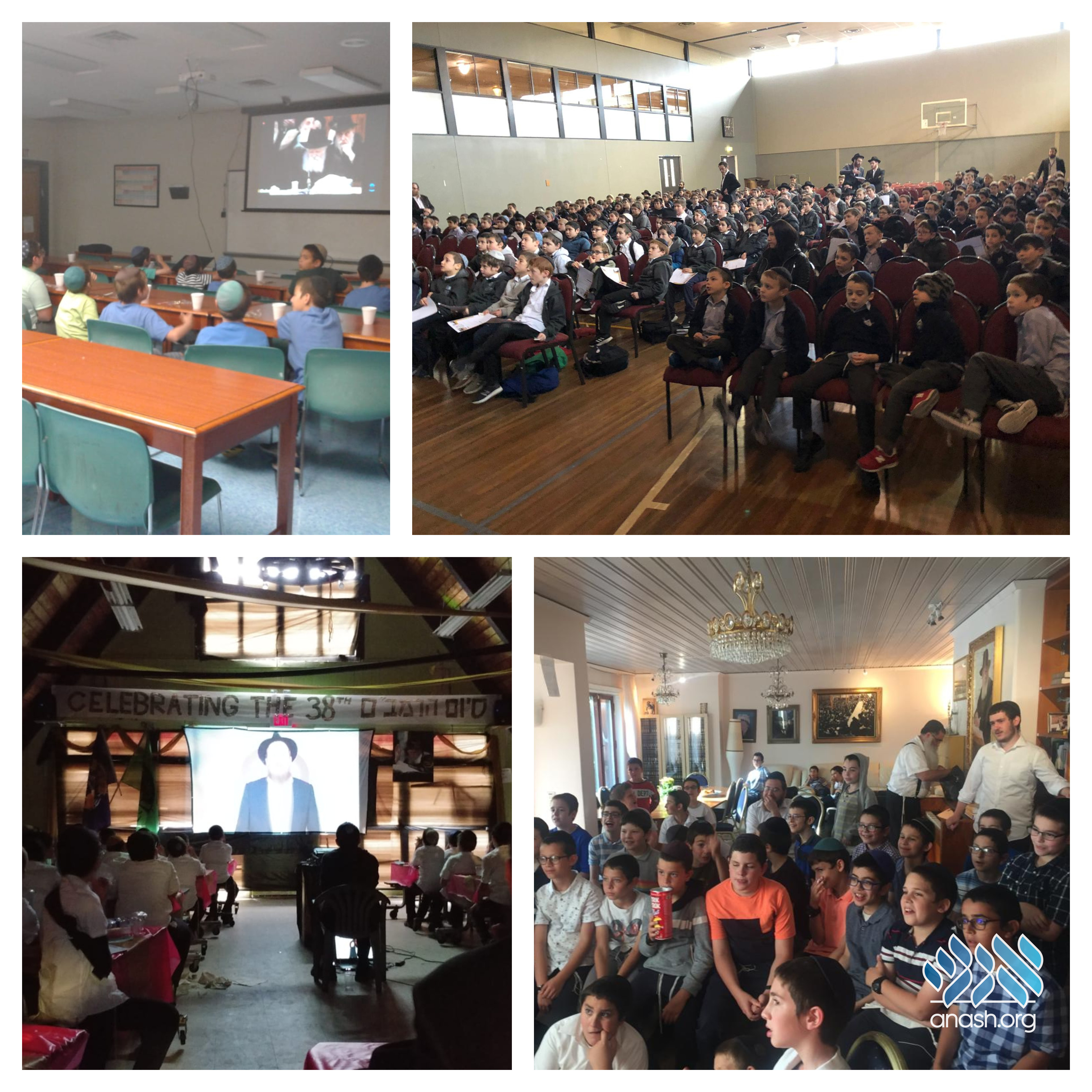 In addition to a simultaneous live broadcast with participation from camps Gan Yisroel Montreal, Detroit, Toronto, Florida, Camp Emunah and four schools in Australia, over 1,500 families from all 50 states and 30 countries joined the special kid-friendly program from their supper tables.