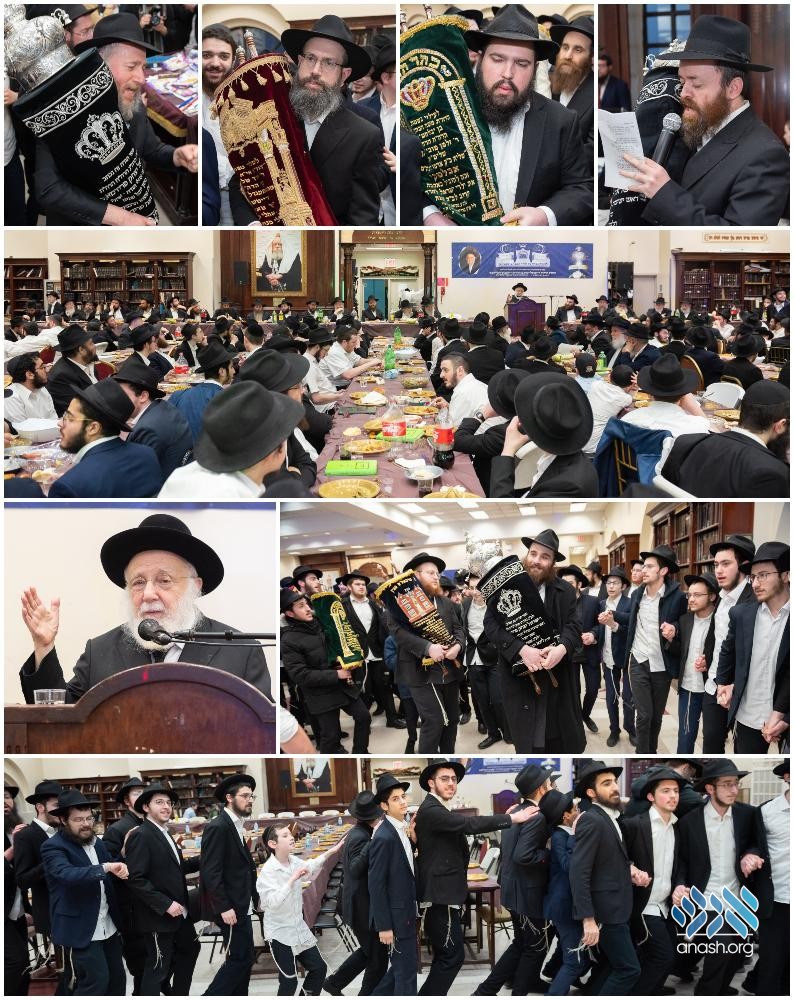 Following the completion of the new Sefer Torah in memory of Reb Yisroel Friedman in 770, joyous hakafos were held in Oholei Torah’s zal. A seudas mitzvah and a Siyum Hashas made the celebration a double one.
