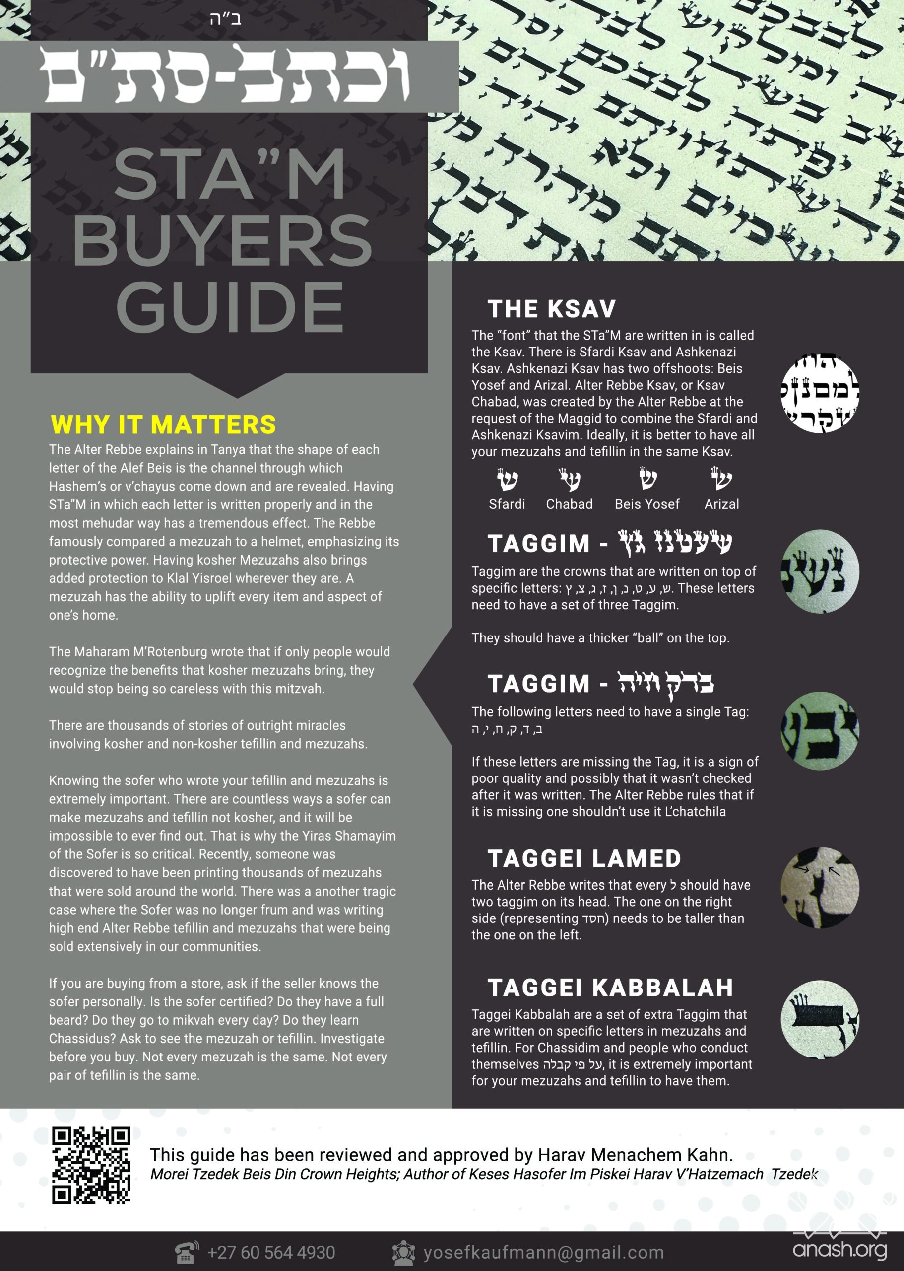 As a small step in that direction, I have put together a short STa”M Buyer’s Guide — a simple resource to help people know what to ask, what to look for, and how to make informed decisions when buying mezuzahs and tefillin. But this can only go so far. Real change will come when the awareness begins in the classroom, in yeshivah, and under the guidance of our rabbonim and teachers.