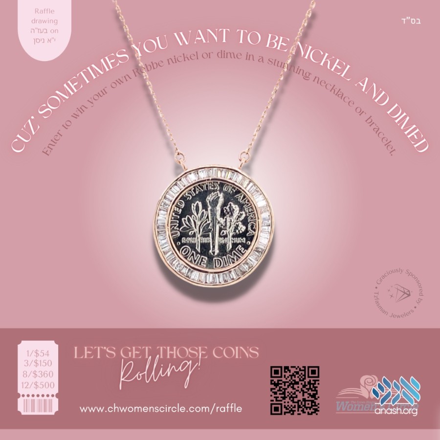 Support the Crown Heights Women’s Circle, and enter in a raffle to win your own Rebbe nickel or dime in a stunning necklace or bracelet.