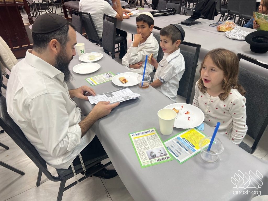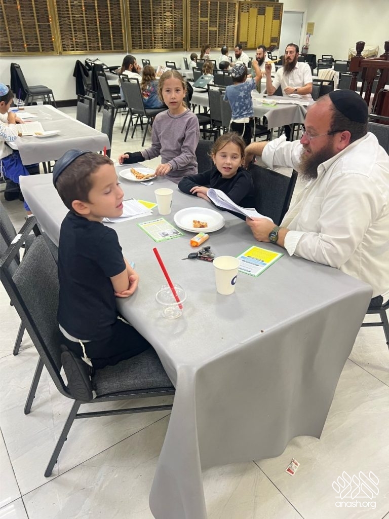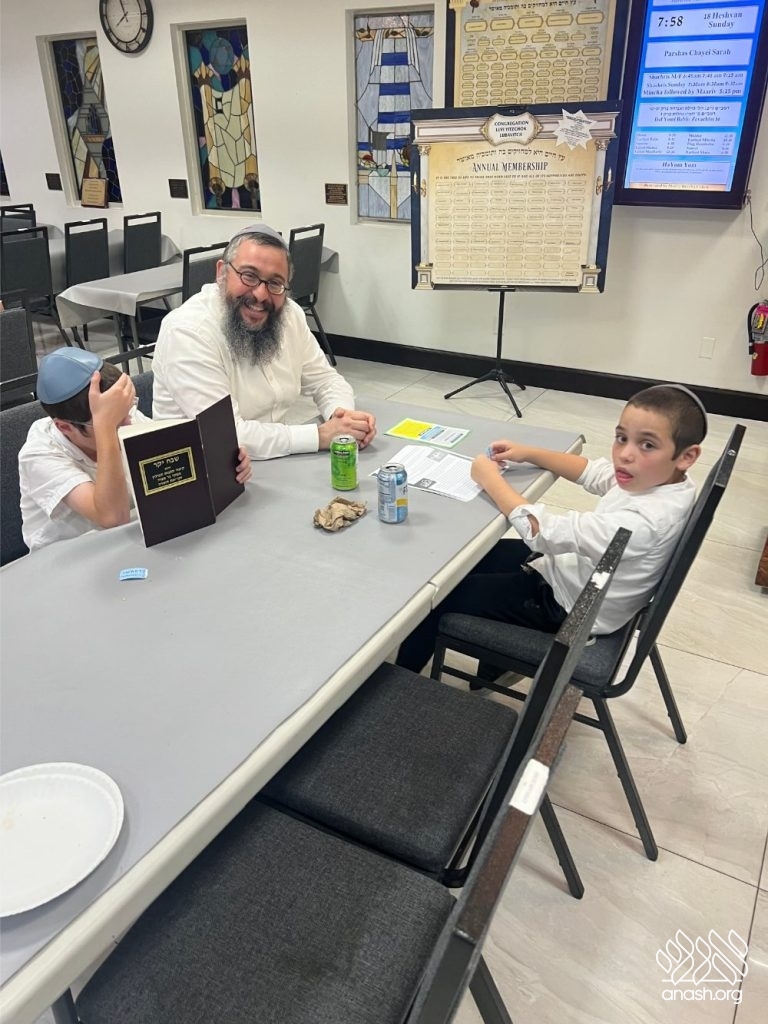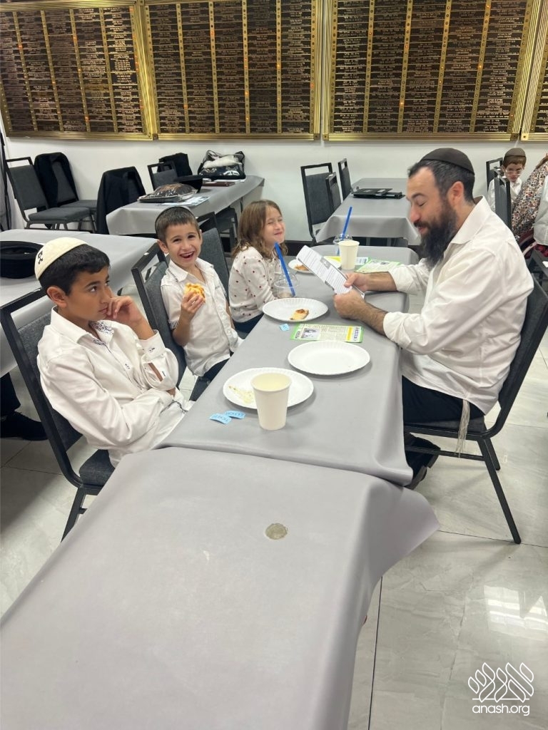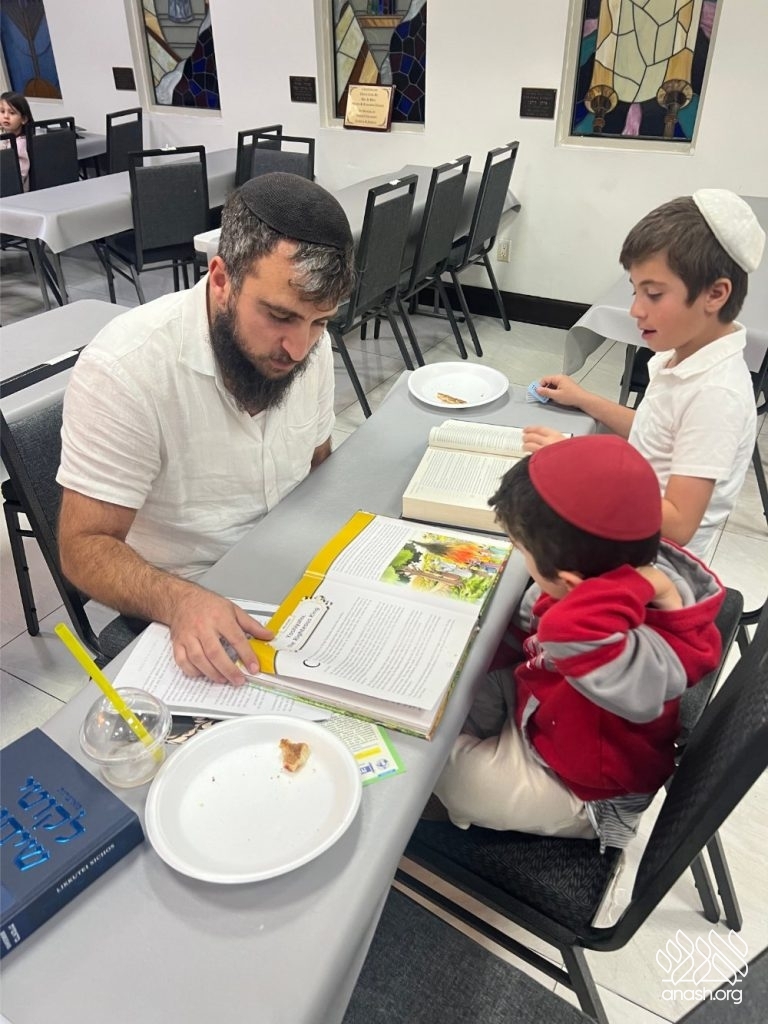 For forty-five minutes, the Shul was filled with the sweet sound of Torah, as fathers learned together with their sons and daughters — reviewing what the children learned in school or opening a sefer for something new. The atmosphere was warm, lively, and full of nachas.