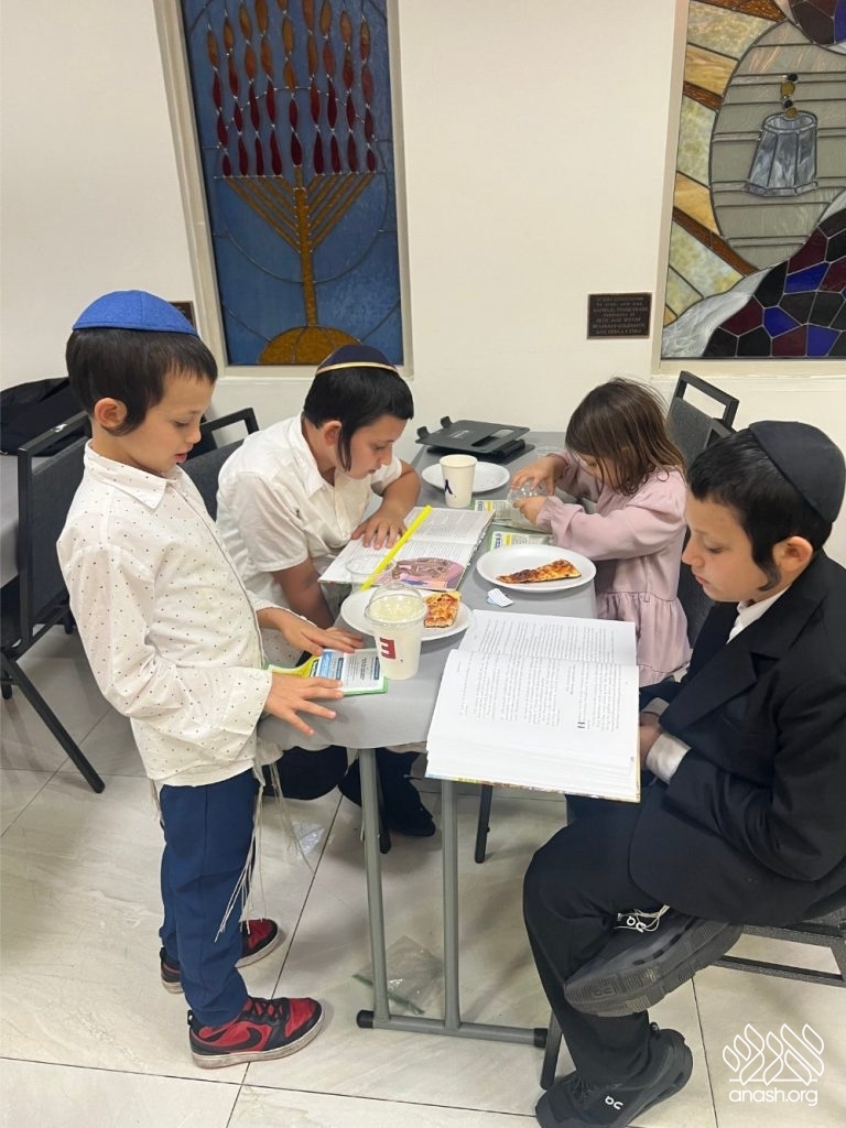 Afterwards, the children said the 12 pesukim together, followed by raffles, exciting prizes, slushies, and hot pizza — a real treat for everyone.