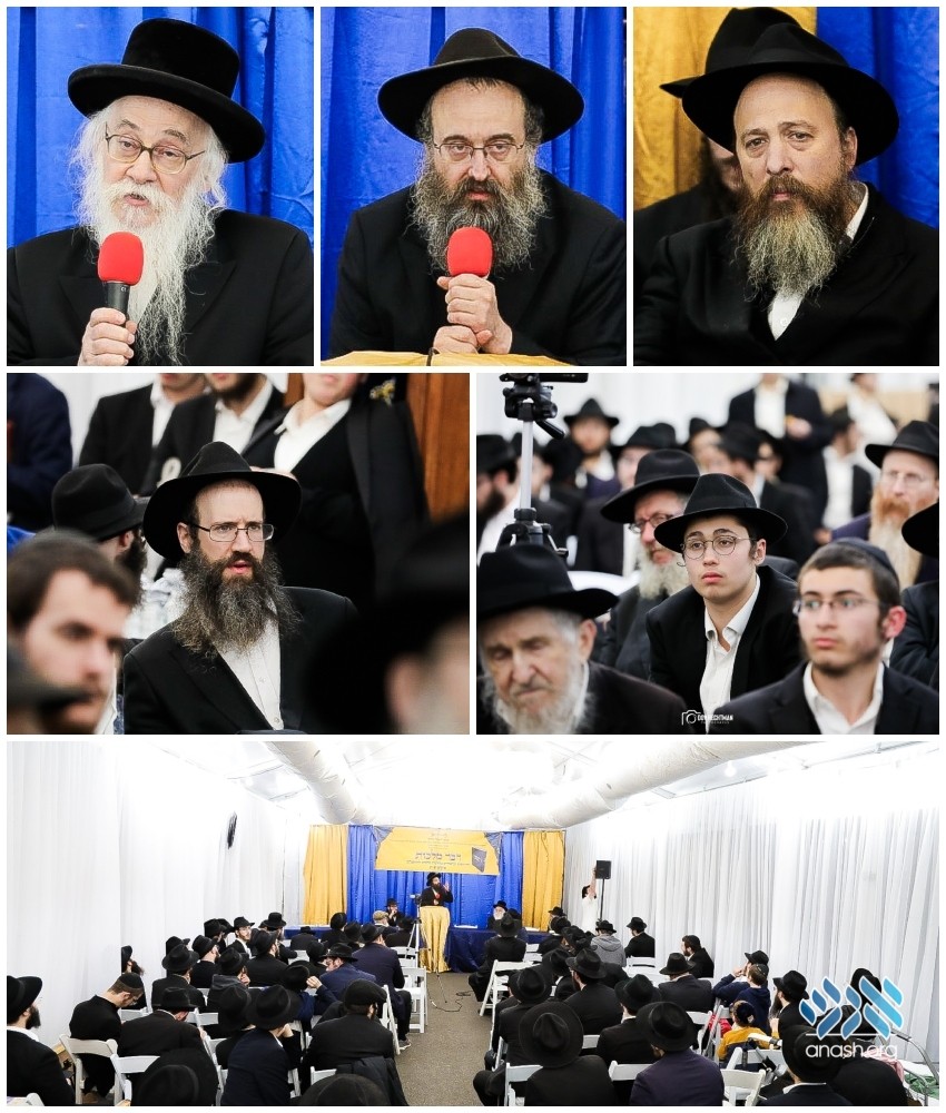 Speakers included Rabbi Nachman Schapiro, Rabbi Yosef Braun, Rabbi Noam Wagner, Rabbi Avrohom Mann, and Rabbi Menachem Mendel Ezagui the compiler of the sefer.
