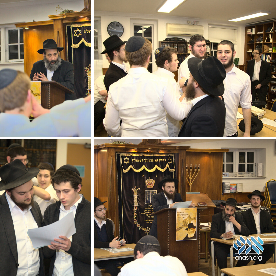 Joyous dancing broke out at Yeshiva Gedola Lubavitch in London when the bochurim were told of this year’s mivtza hachana for yud shvat.