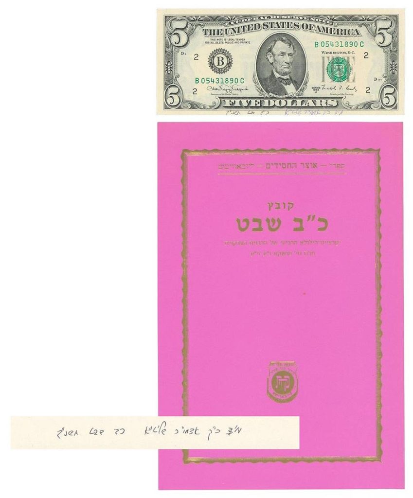 Kovetz “22nd Shvat” With a Five Dollar Bill from the Rebbe’s Holy hands and in the Original Plastic Cover, 1992.