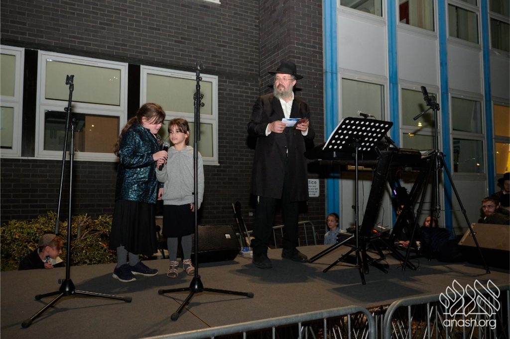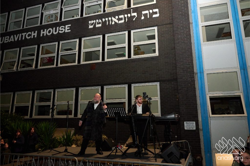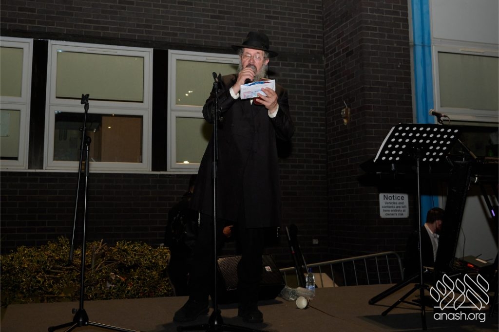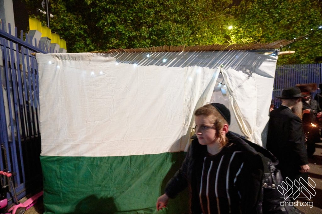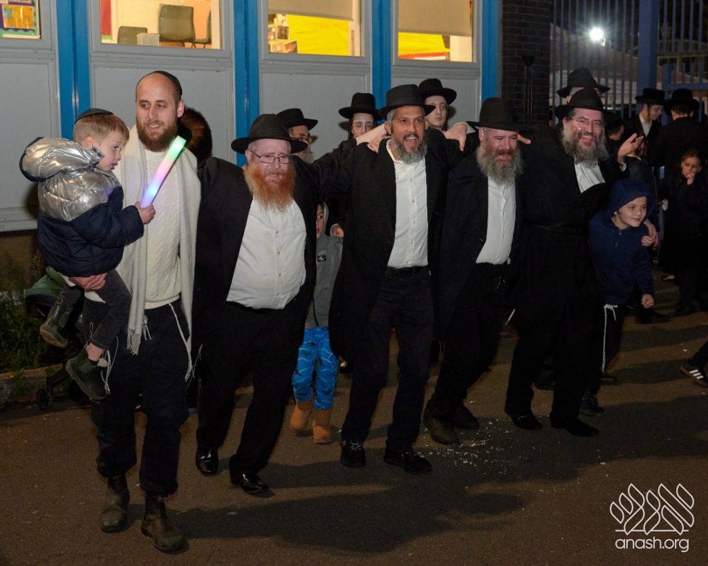 Hundreds of residents from the Stamford Hill community in London gathered at Lubavitch House in for a large Simchas Beis Hashoeiva celebration on Chol Hamoed Sukkos.