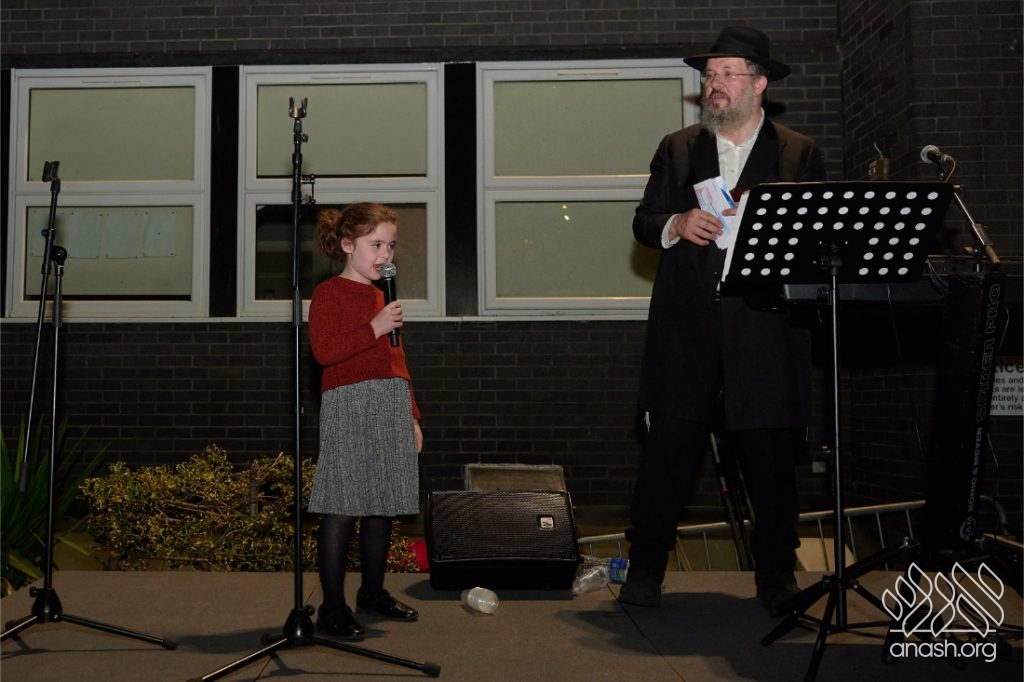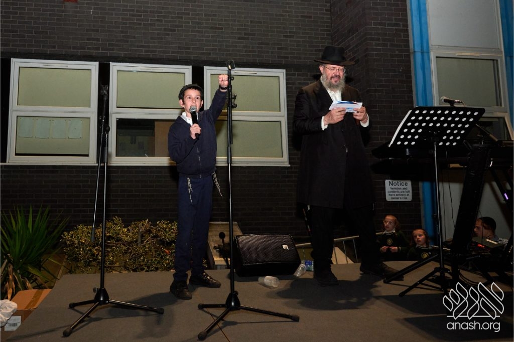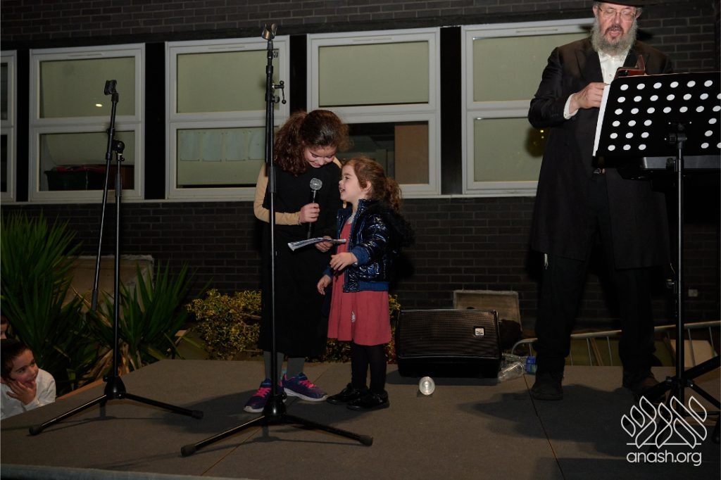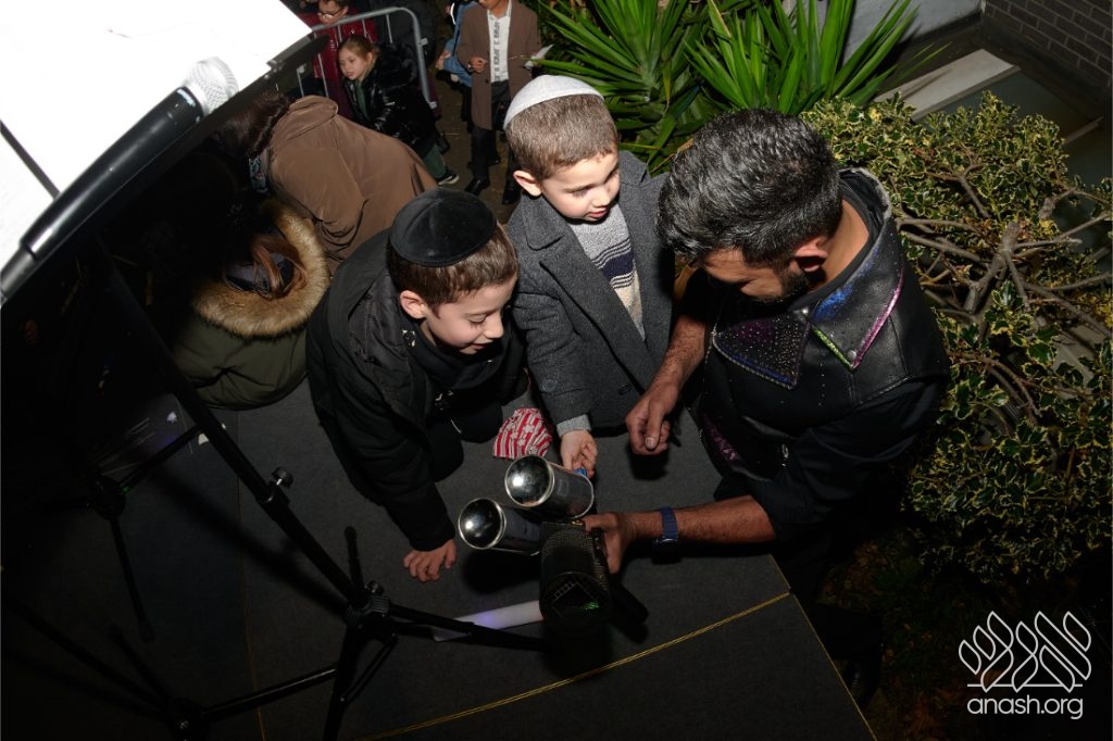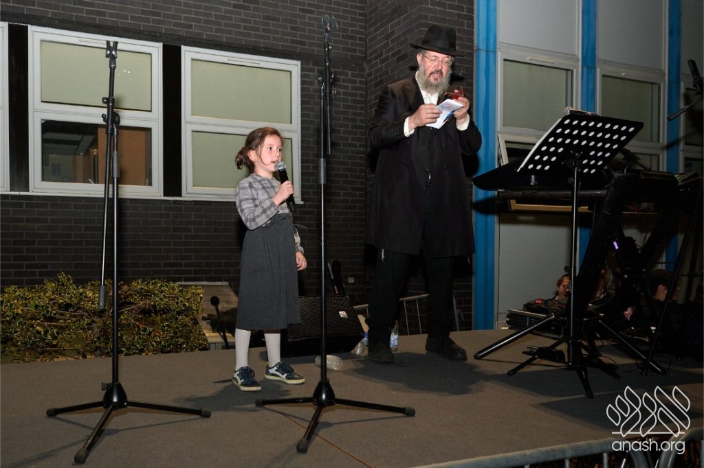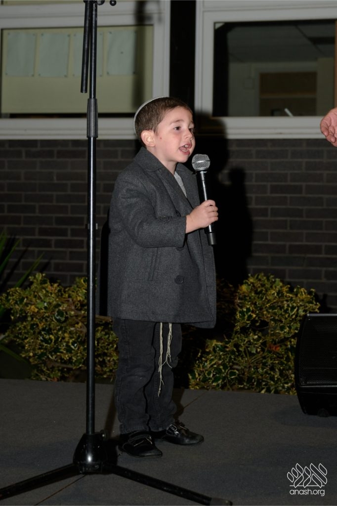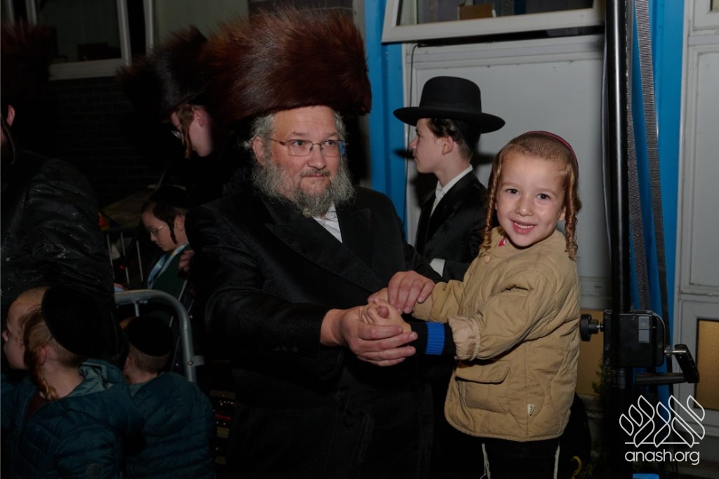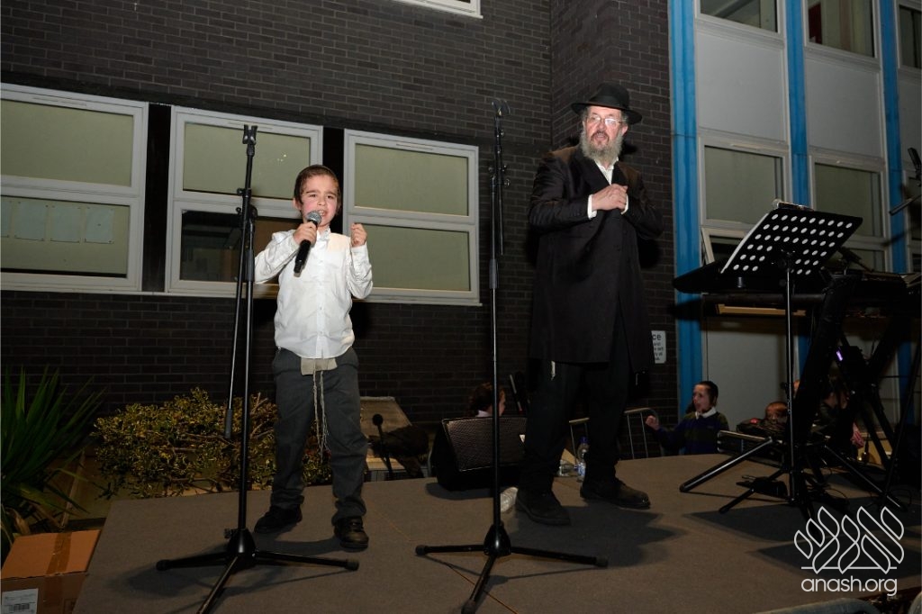 The evening began with children proudly reciting the Twelve Pesukim, followed by a spectacular fire-juggling show by a well-known entertainer that delighted young and old alike. Afterward, the crowd broke into lively dancing and joyous niggunim that filled the streets for many long hours.