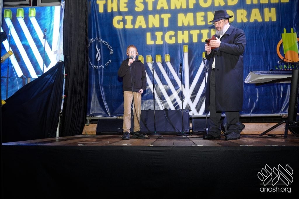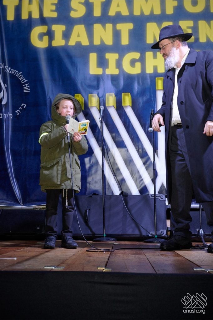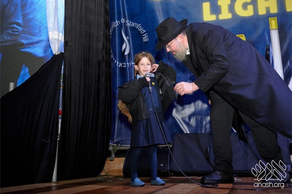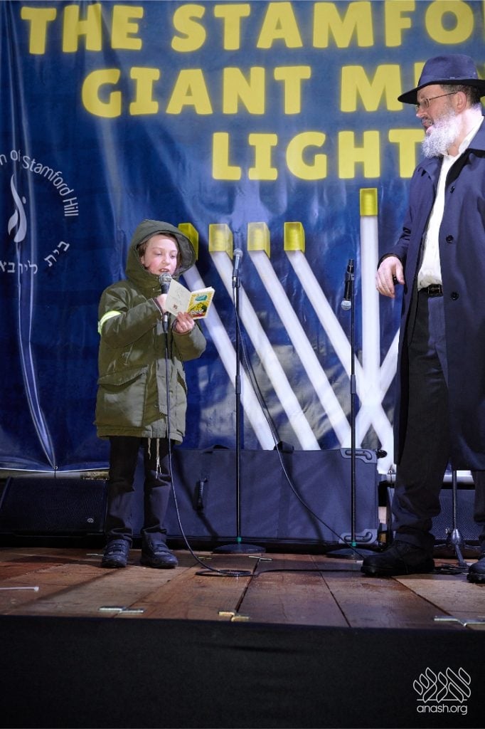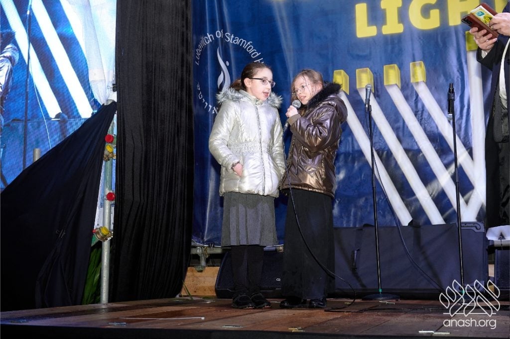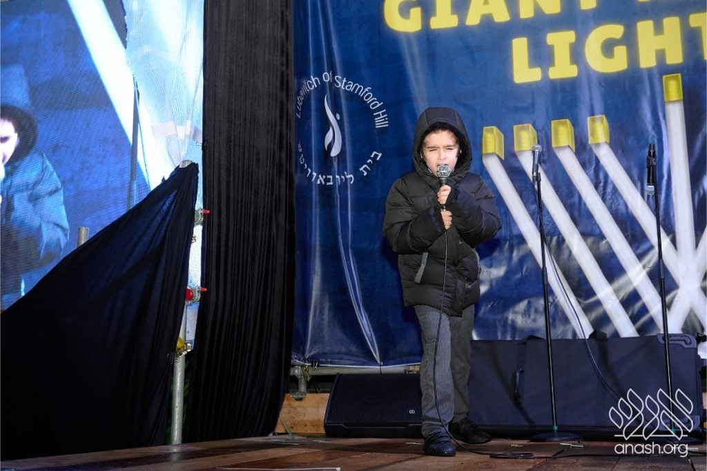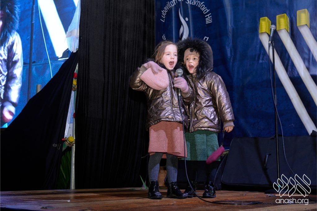 Despite heavy rain throughout the day, the local community came together for a joyous public menorah lighting organized by Lubavitch Stamford Hill and the Lubavitch Children’s Centre, under the leadership of Rabbi Sholem Ber and Devorah Leah Sudak, and Rabbi Mendel and Miri Sudak. The rain cleared just before 6:00 pm, allowing the festivities to go ahead as planned.