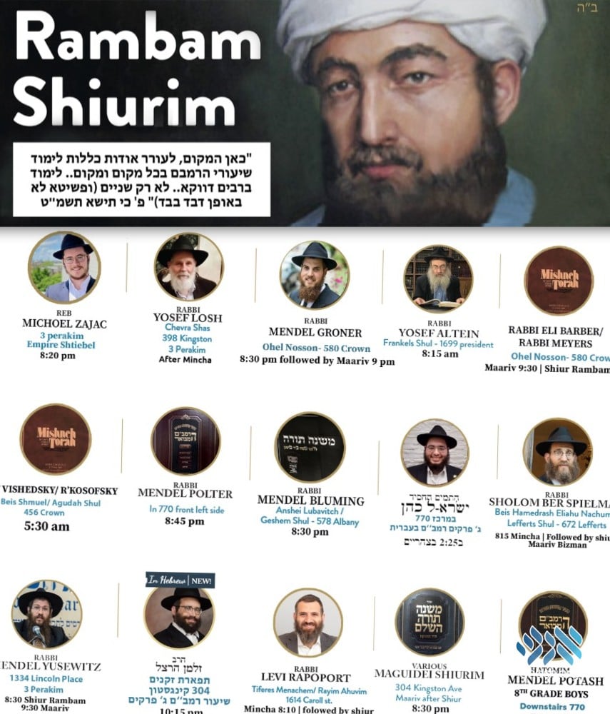 Start the new cycle of Rambam with one of many Rambam classes taught by talented maggidei shiurim at locations throughout Crown Heights.
