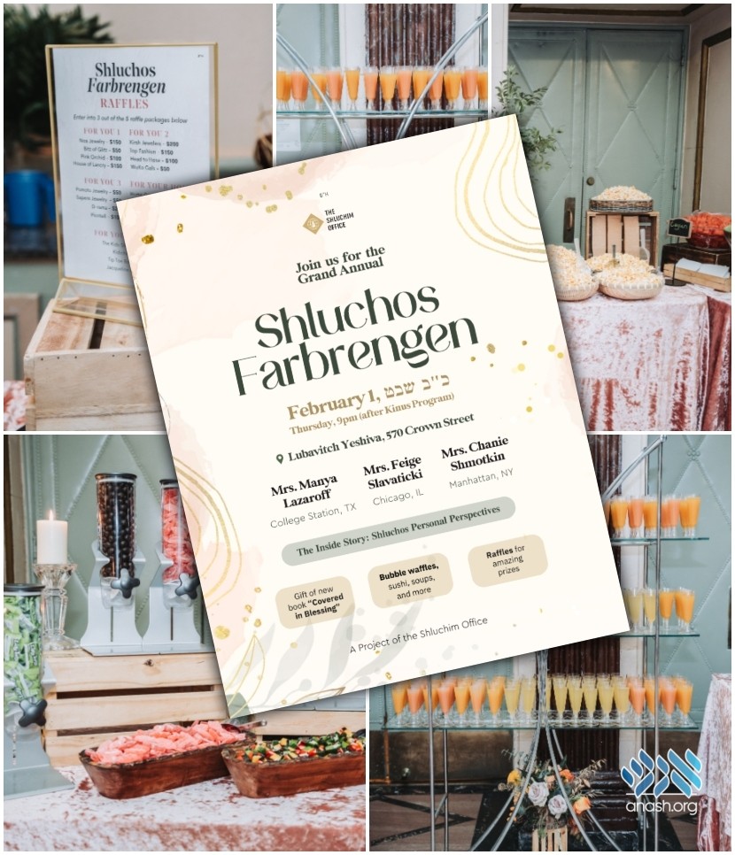 The Shluchim Office announces this year’s lineup for the annual Shluchos Farbrengen, featuring Mrs. Manya Lazaroff, Mrs. Chanie Shmotkin, and Mrs. Feige Slaviticki.