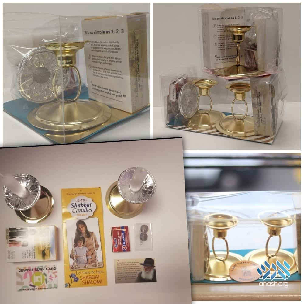 Then, they put together “Neshek Gift Boxes,” featuring the candlesticks that the Rebbe had designed. They included candles, Tzedakah, an instruction guide to lighting candles, a Pushka, and much more.