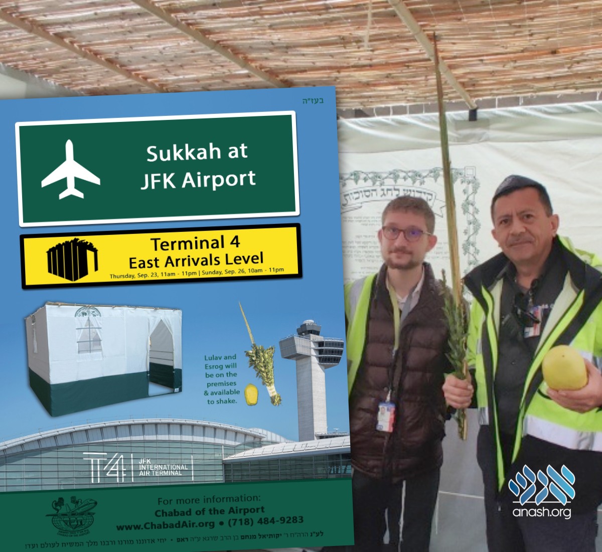 Rabbi Yossi Rapp of Chabad of the Airport announced that once again passengers at JFK Airport this Chol Hamoed will be able to take advantage of a Sukkah on the way to their flights.