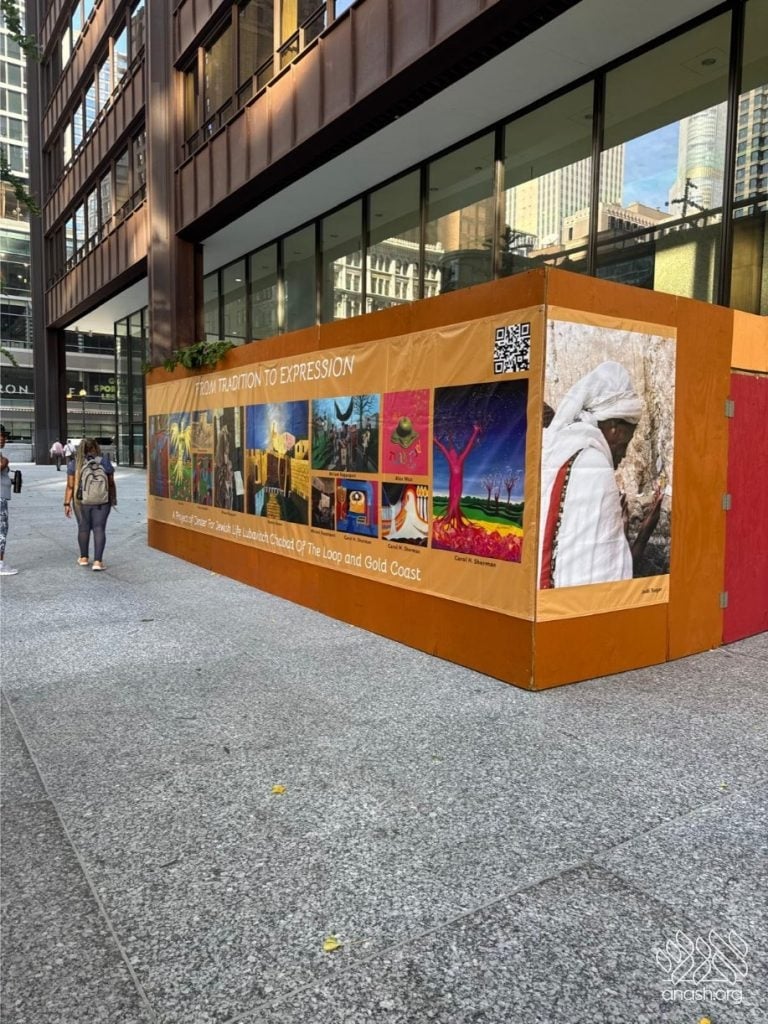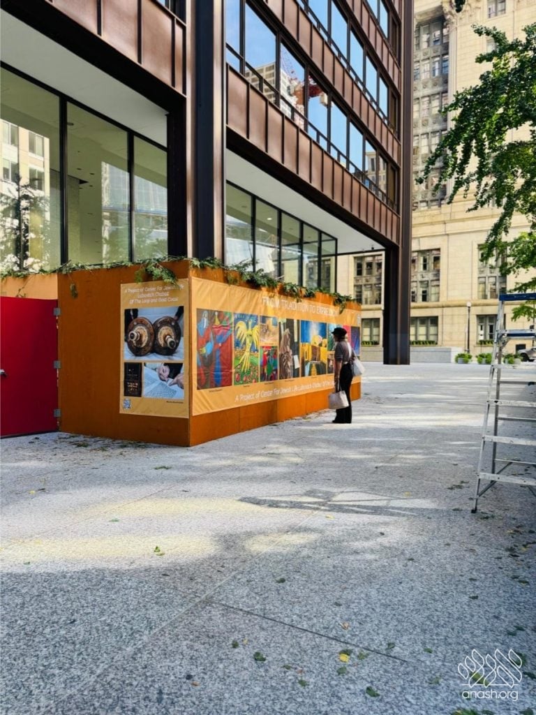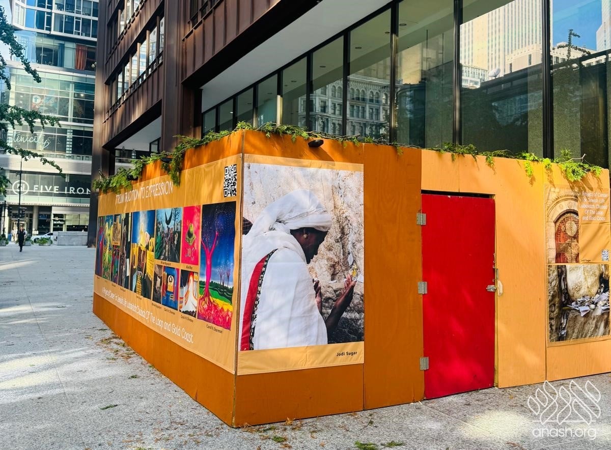 For decades, Lubavitch Chabad of the Loop, has built a large sukkah in the heart of downtown, where hundreds come daily to shake lulav and esrog, eat, and connect with Yiddishkeit. This year, the sukkah became much more than just a place for mitzvos – it was transformed into a full immersive art experience titled “Framing Our Heritage.”