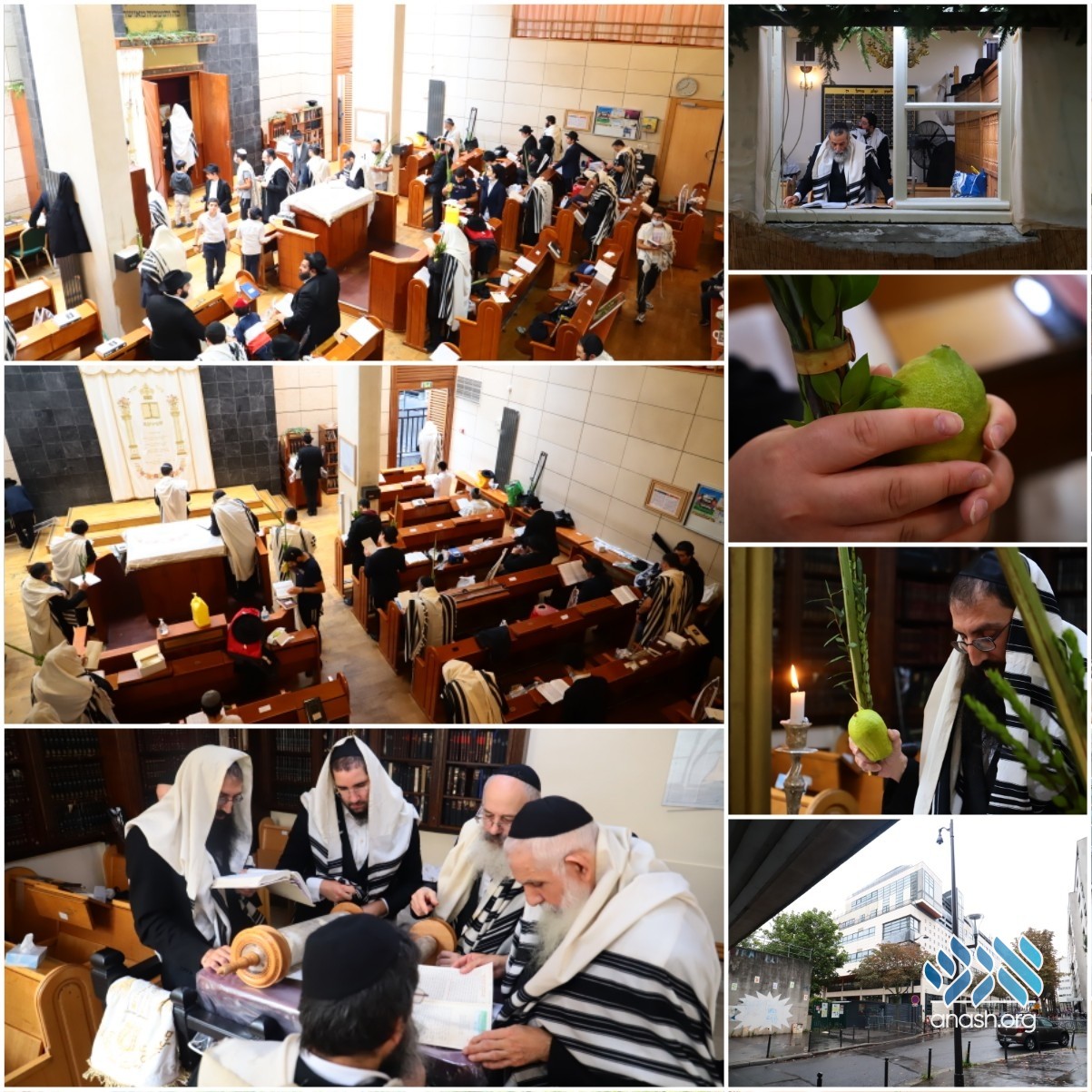 Lubavitchers from around Paris packed into the small shul where the Rebbe davened while living in Paris to daven the special tefilos of Hoshana Rabba.