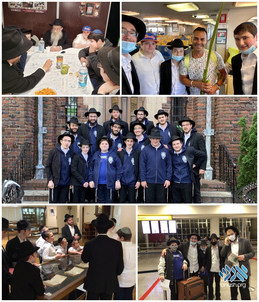The boys began each day with learning Chassidus, together with mezonos and drinks, as a preparation to davening, followed by an elaborate breakfast. They then set out on Mivtzoim, on the Staten Island Ferry, by the Trump Tower, the UN and other such venues.
