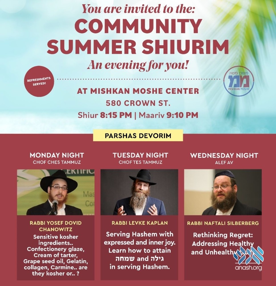 Join the Summer Learning Program with nightly shiurim by leading magidei shiurim with refreshments served!