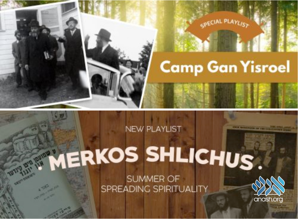 Ashreinu has prepared and curated two beautiful collections of audio clips of the Rebbe. Listen to the Rebbe’s talks to students traveling to do Jewish outreach during the summer, as well as talks to and about summer camps.