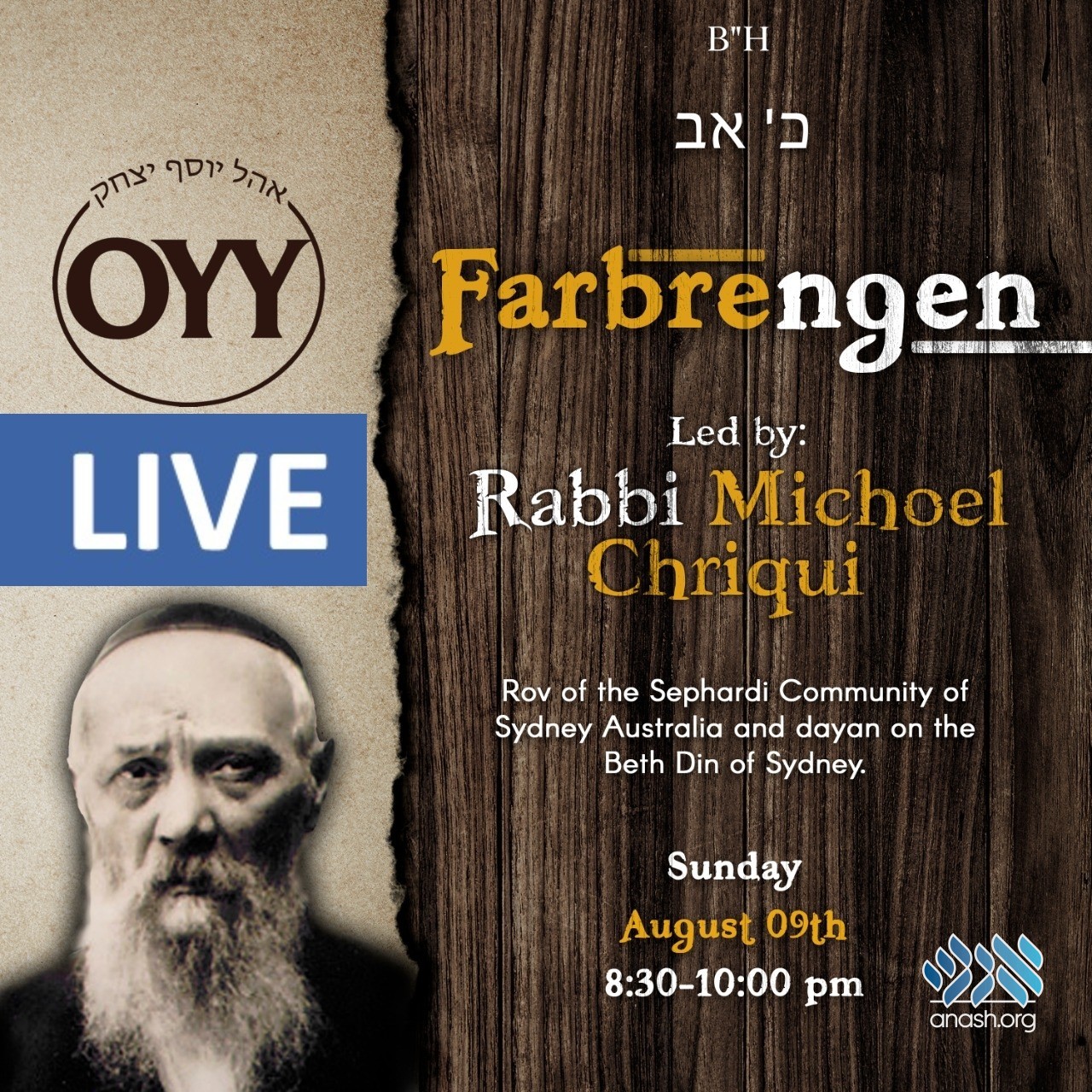Sunday: Chof Av Farbrengen with Sydney Dayan