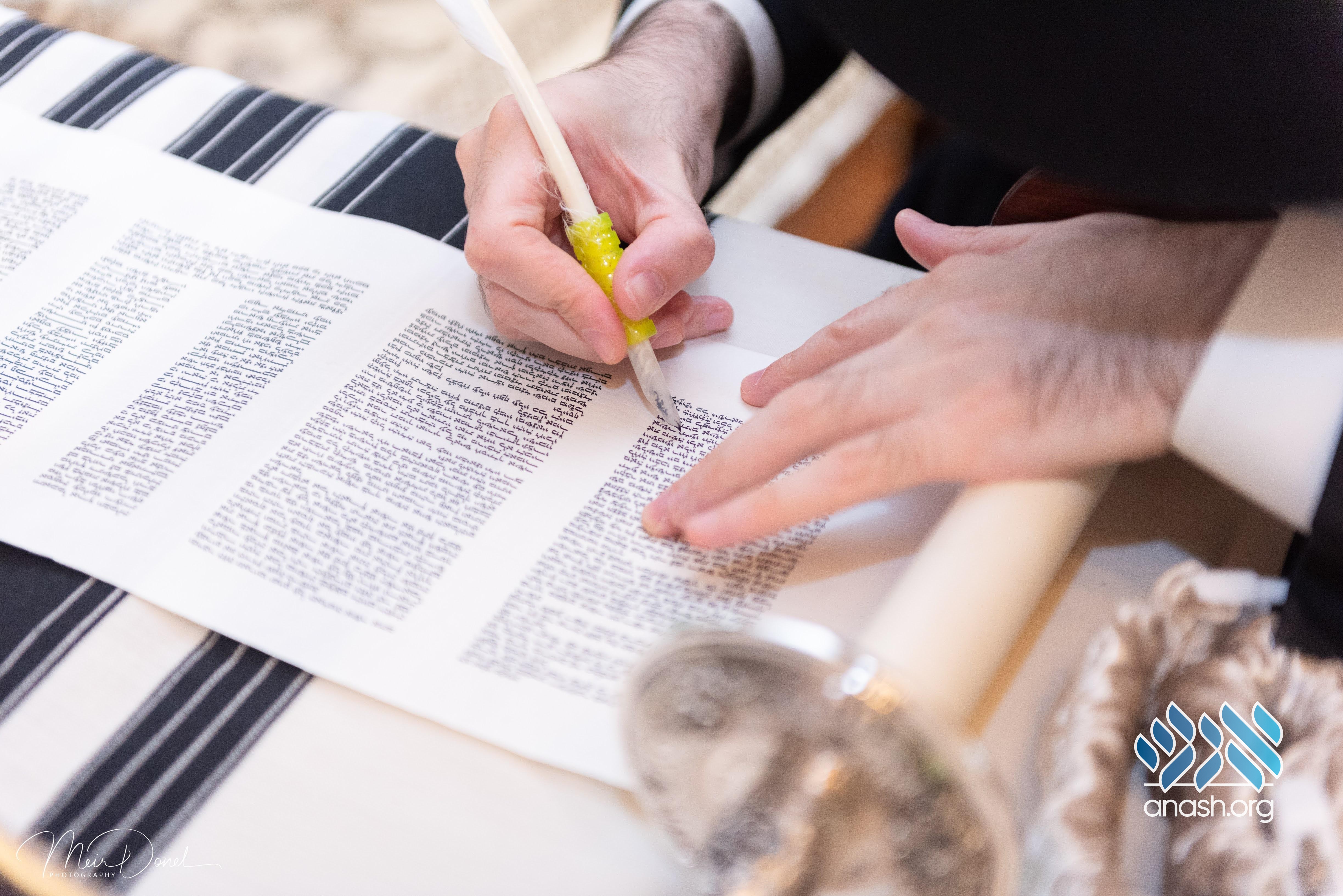 Writing of the final letters will take place at 4:30 PM, parade to 770 and hakafos will take place at 5:30 PM.