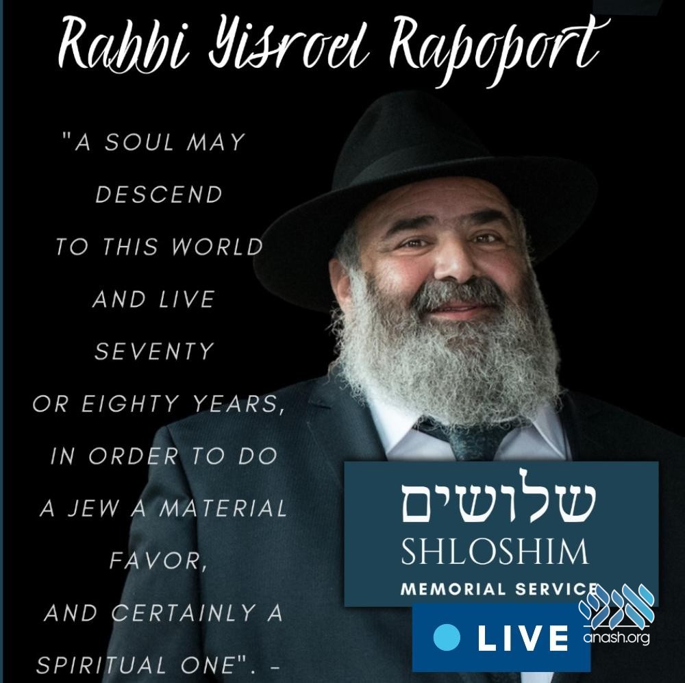 Sunday: Shloshim Memorial for Rabbi Yisroel Rapoport