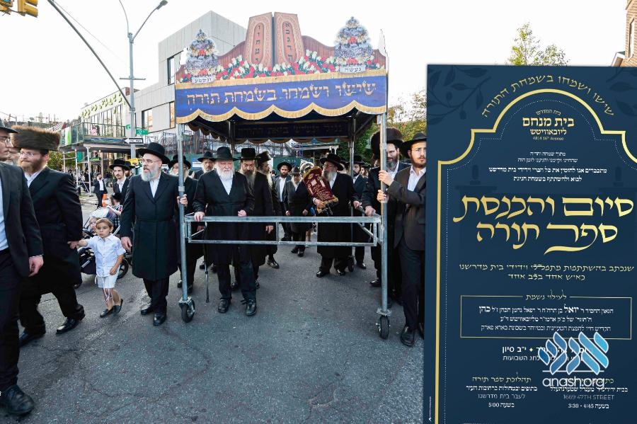 From there at 5:00 PM, the Torah will be brought in a joyous procession with music, dancing, through the streets of Boro Park, concluding at Bais Menachem on 16th Avenue & 48th Street. The celebration will continue with Hakafos and a Farbrengen.