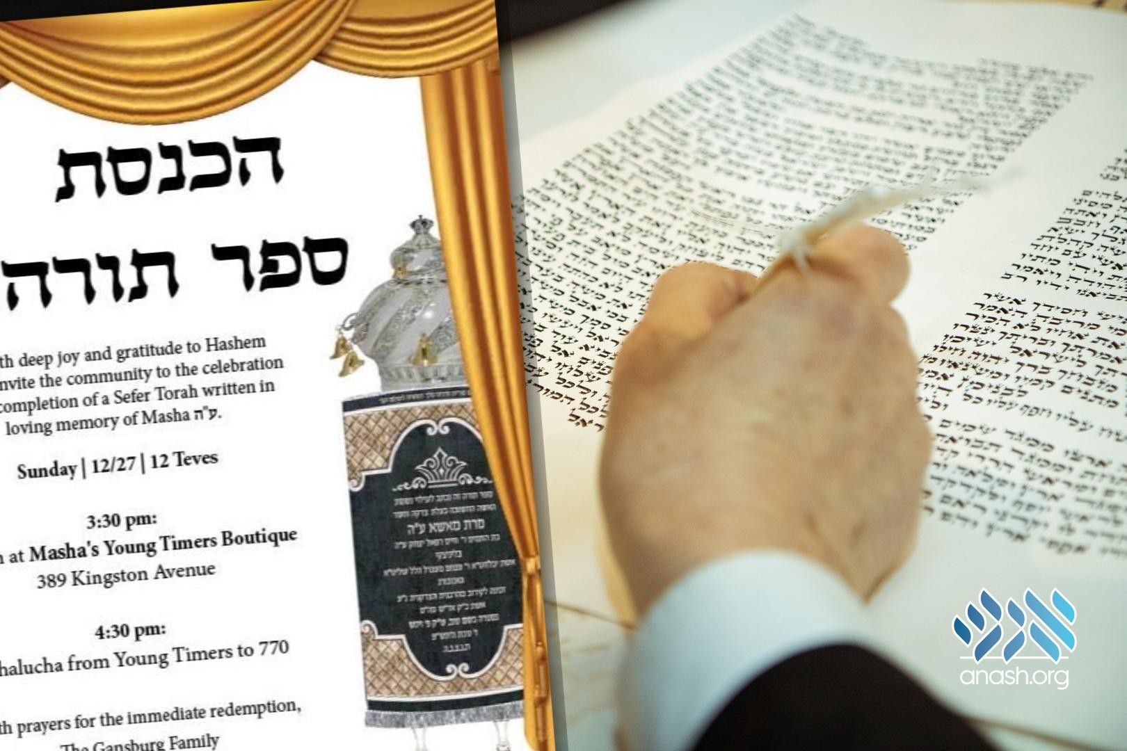 The family of Masha Gansburg invites the entire community to join the celebration of the completion of a Sefer Torah written in her memory.
