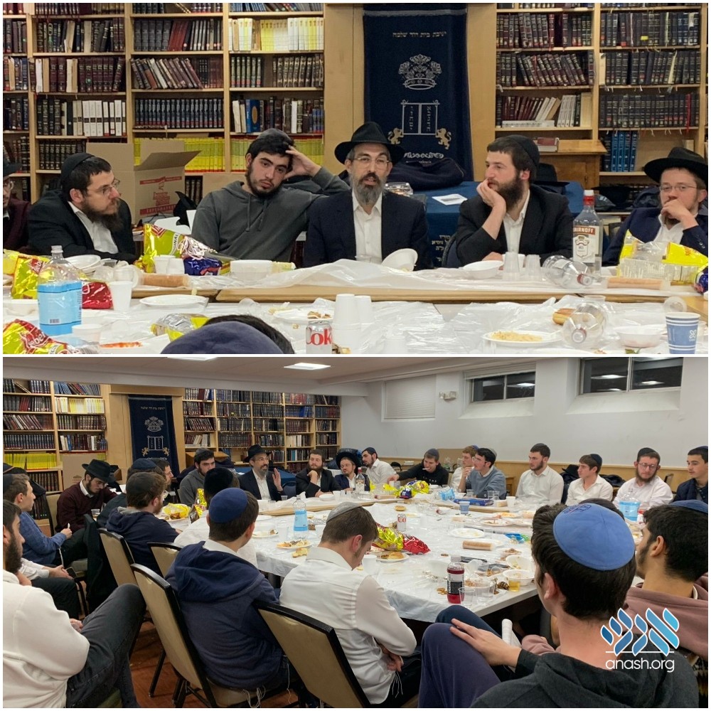 The bochurim on the New Haven Zal gathered on Thursday night for a farbrengen marking Rosh Chodesh Kislev, the day the Rebbe returned home after recovering from a heart attack in 5738.