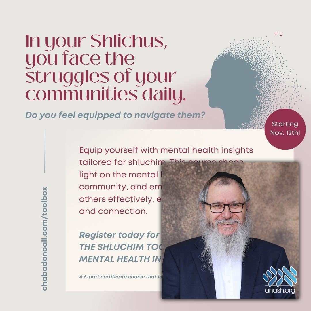 Due to popular demand, Chabad On Call at Merkos 302 is hosting its third cohort of the Shluchim Toolbox: Mental Health Insights course. This program is designed to equip newer shluchim with crucial skills to support the mental and emotional well-being of their communities.