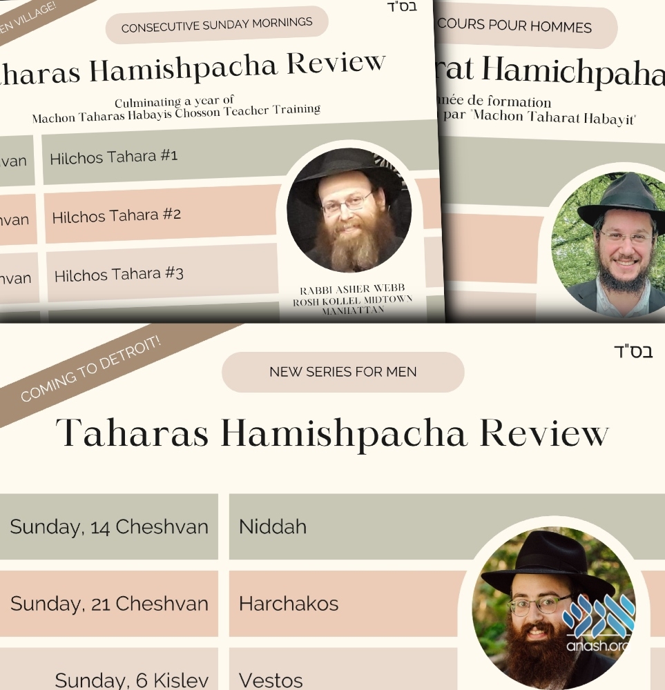 Machon Taharas Habayis is launching a series of Taharas Hamishpocha reviews in Chabad communities across North America and in a number of languages to help review these very special halochos.