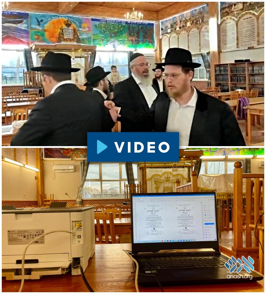 Rabbi Menachem Schochet, the kalla‘s father, was honored with beginning the printing, while joyous Chabad niggunim were played in the background. The assembled then began dancing, celebrating the spread of the wellsprings of Chassidus, and the fulfilment of the Rebbe’s request.
