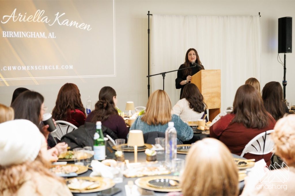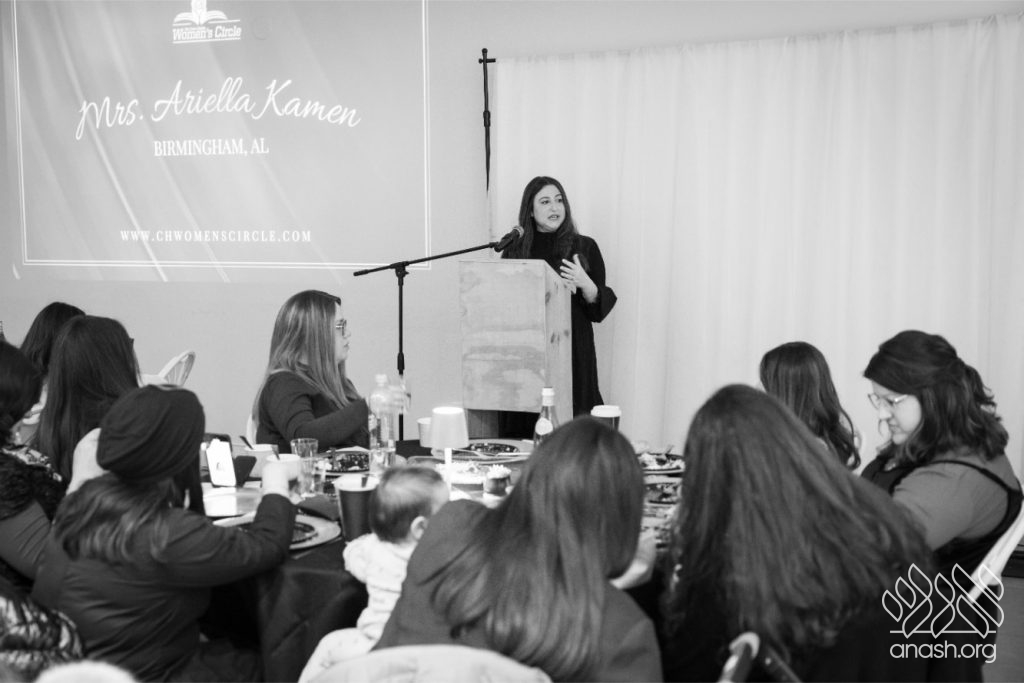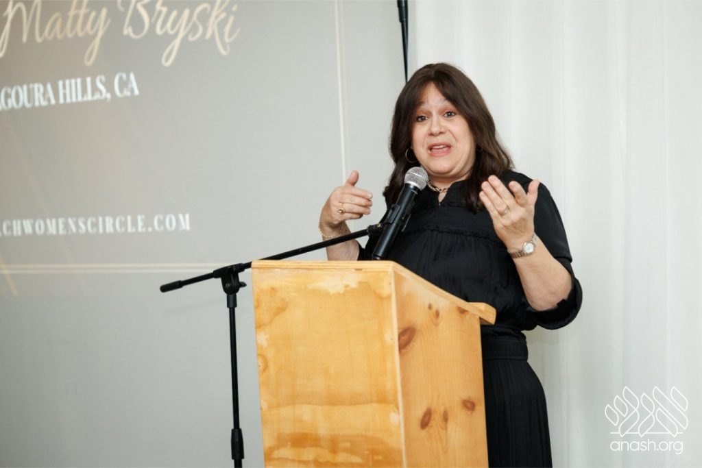 This was but one of the profound lessons shared at the recent Melava Malka celebrating the 15th anniversary of the Crown Heights Women’s Circle. Keynote speaker Mrs. Ariella Kamen described her miraculous journey to motherhood in a talk that brought tears and laughter. Though her condition is rare, her approach to emuna and her coping methods are universal lessons that all the attendees could relate to.