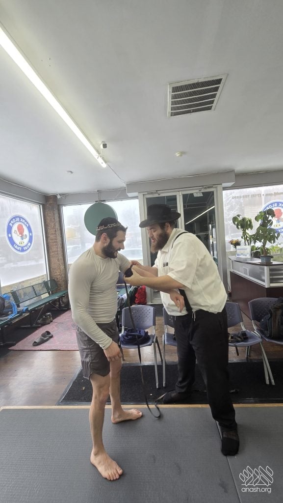 “When Rabbi Kirschenbaum asked me to go put on tefillin with the Jewish Jiu-Jitsu club, I wasn’t sure what it was,” Mendel told Anash.org. “But I knew I was going to wrap tefillin with the guys.”