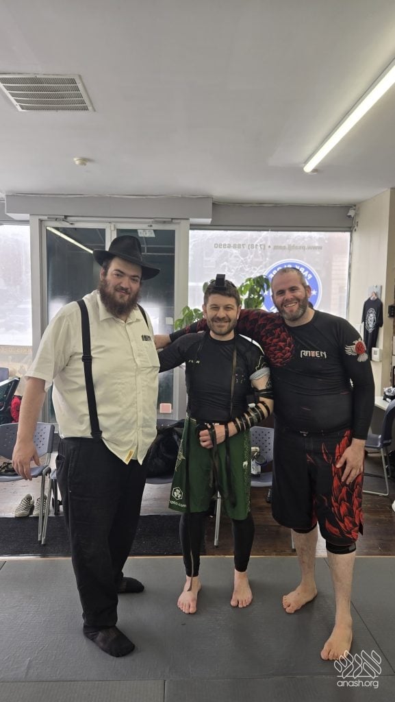 Not one to back down from a challenge – or pass up a chance to help another Yid do a mitzva – Mendel accepted the terms. He stepped onto the mats and engaged in the match, navigating submissions and sweeps to earn the trust and camaraderie of the group.