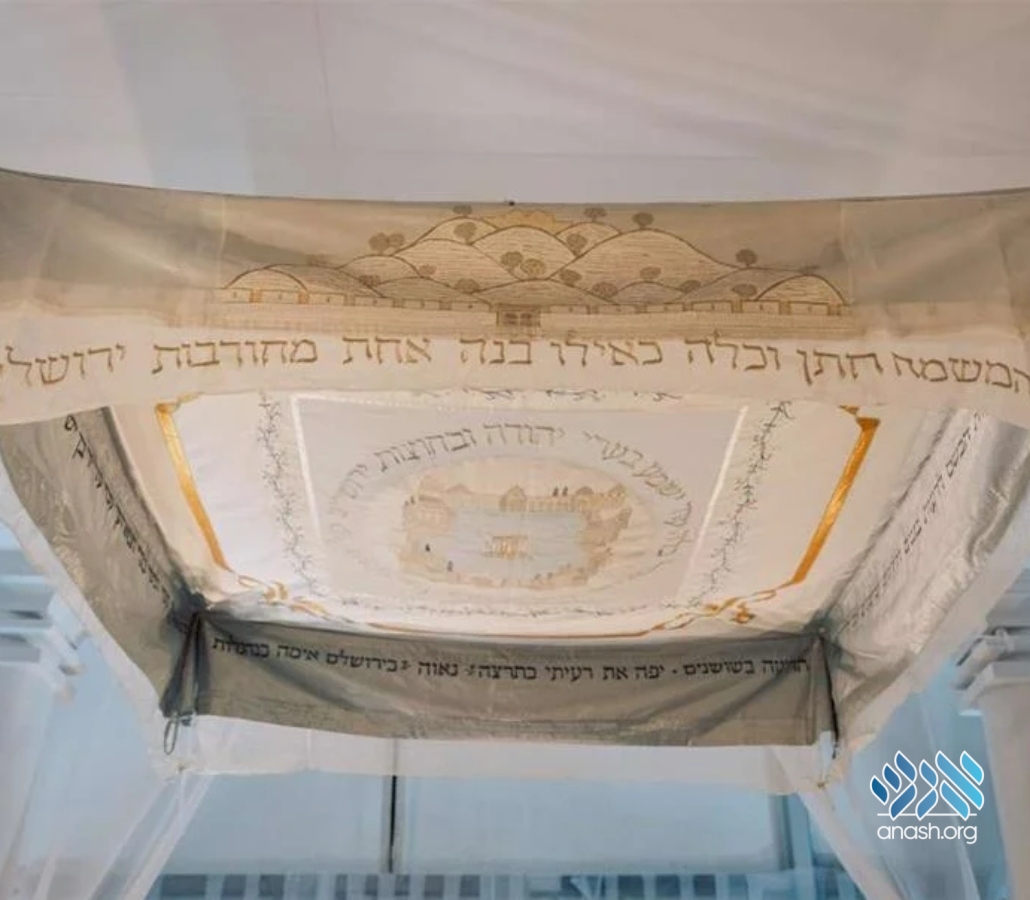 A chosson and kallah from Long Island, along with their shliach, remembered a murdered kallah-to-be, who lost her life the night before her wedding in a terror attack and whose gown was sewn into a chuppah.