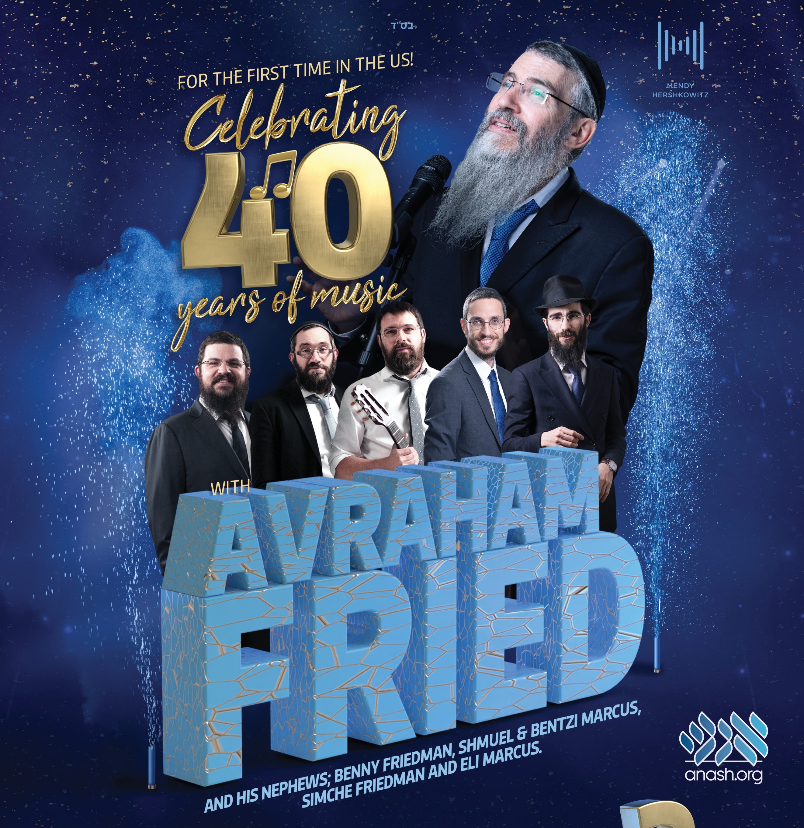 The Double Event will be a full-on concert celebrating 40 years of Avraham Fried’s music, joined by his superstar lineup of nephews: Benny, Bentzy, Eli, Shmuly and Simche.