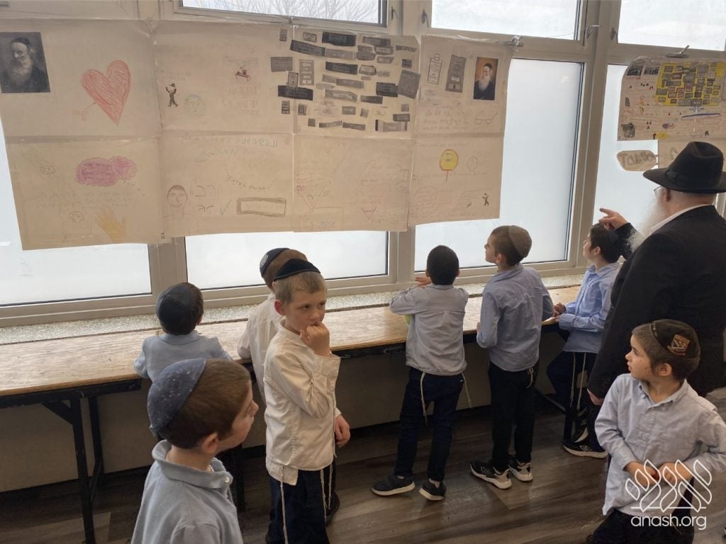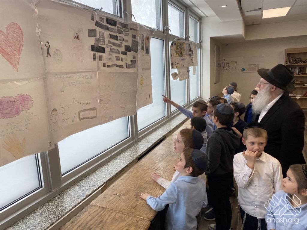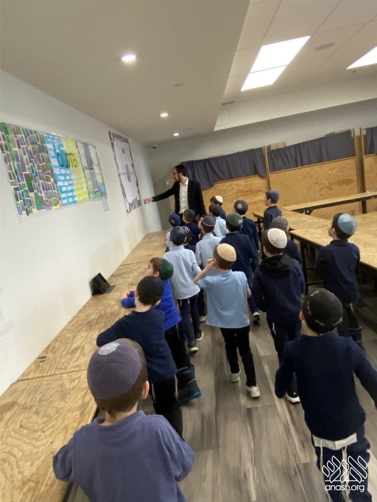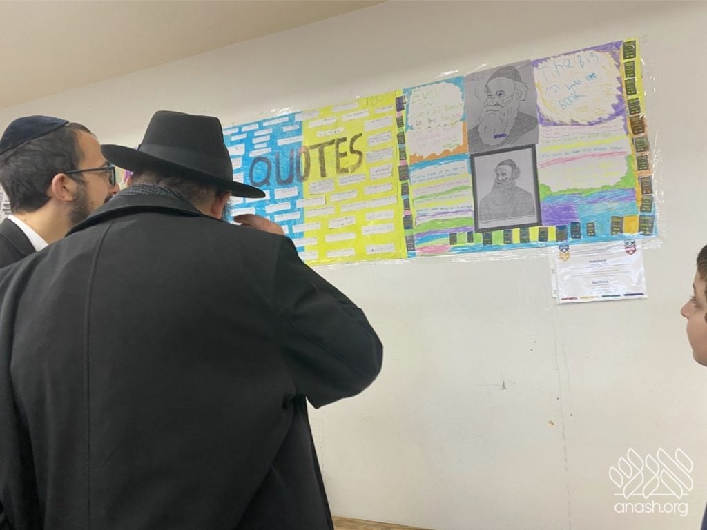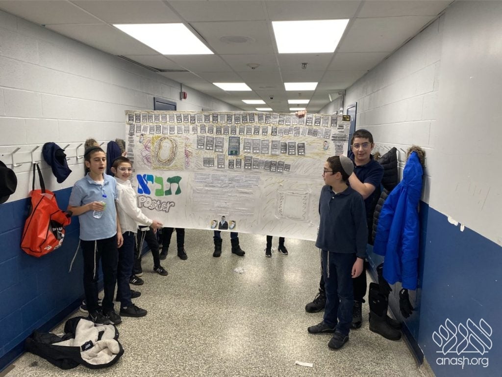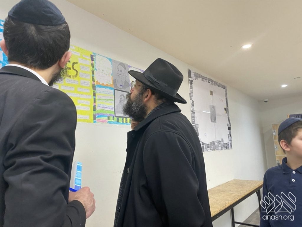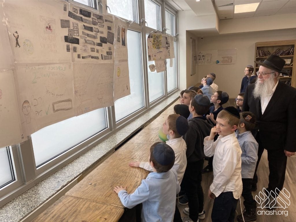 On Tuesday, 24 Teves, our lunchroom was transformed into a “Tanya Poster Gallery.” The younger students (Pre-1A – Grade 3) had the special opportunity to tour the exhibit and view the finished masterpieces. We were also honored to host Rabbi Hershel Raskin, who joined us as the official competition judge to review the impressive work.
