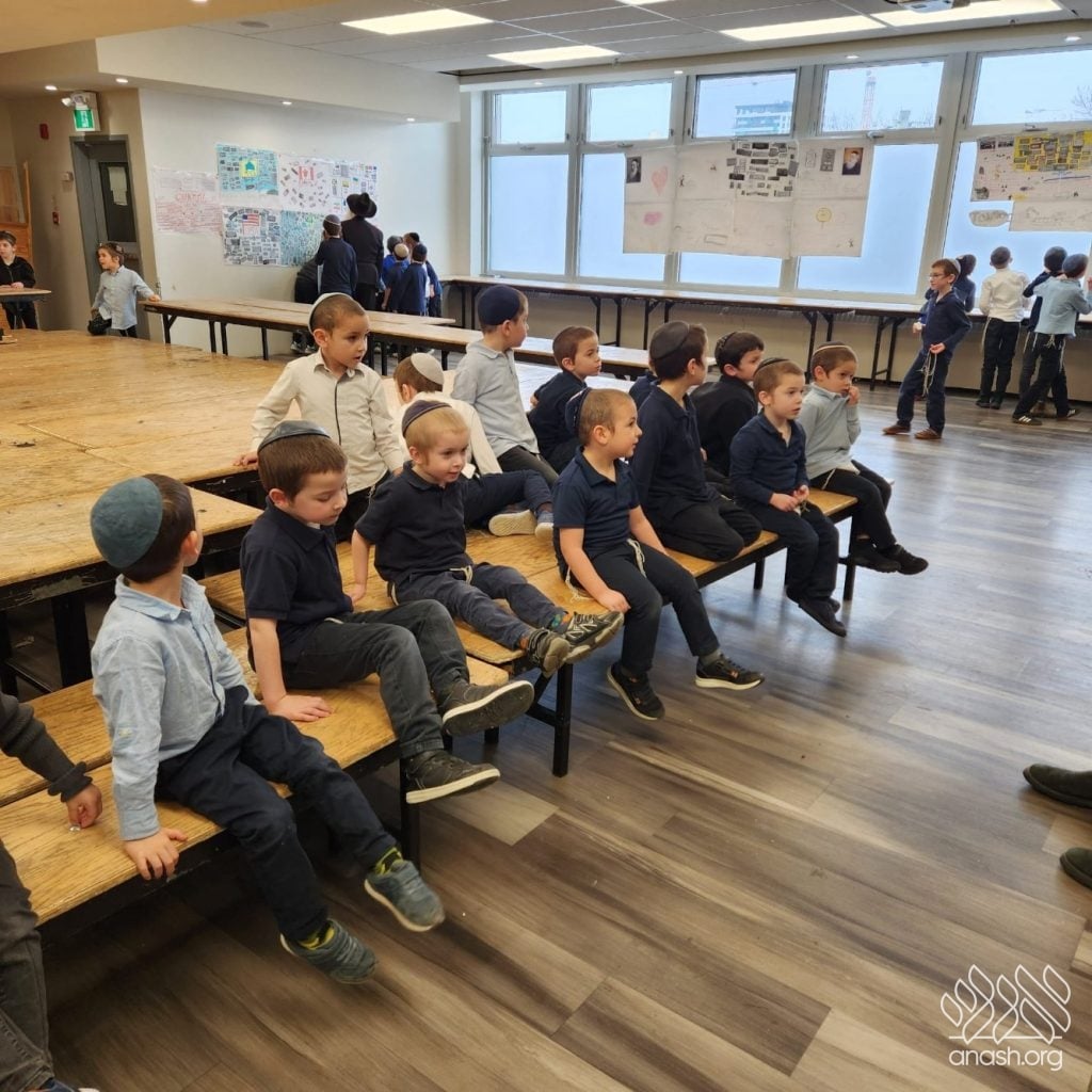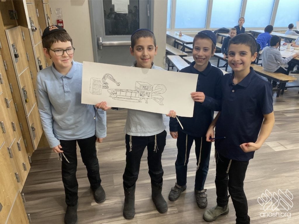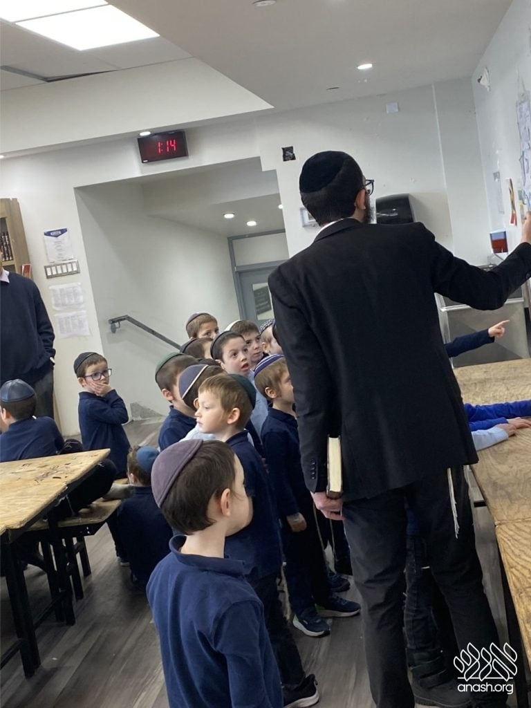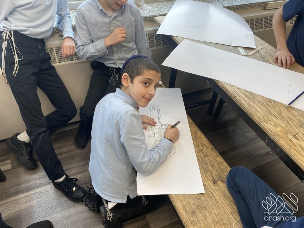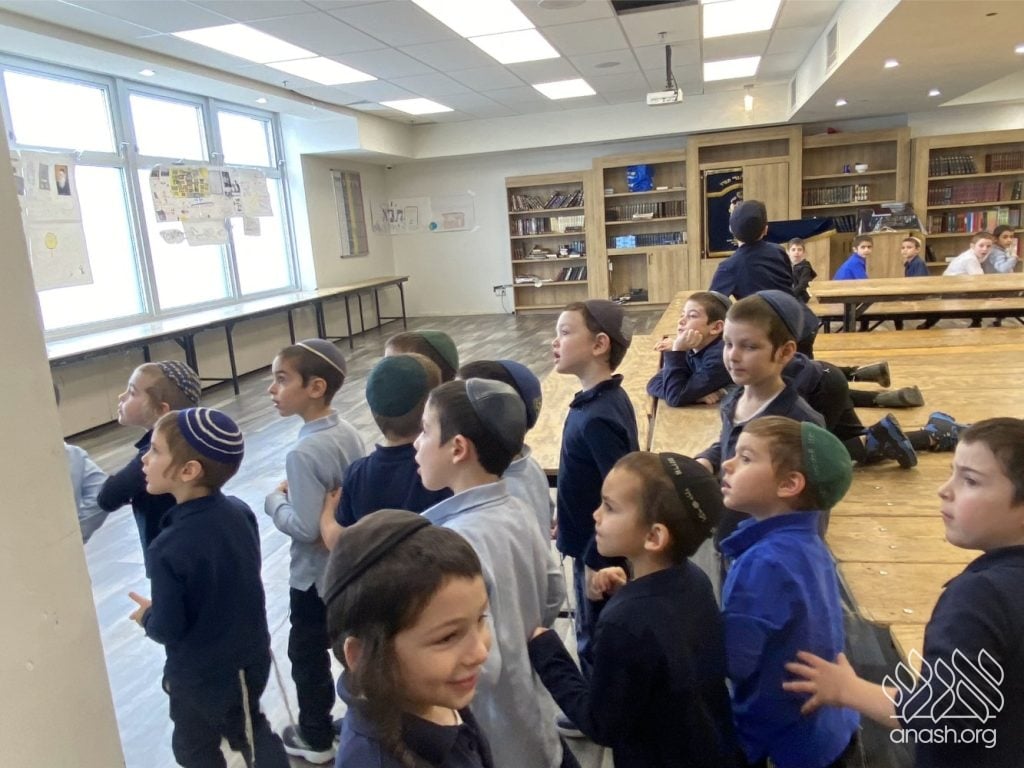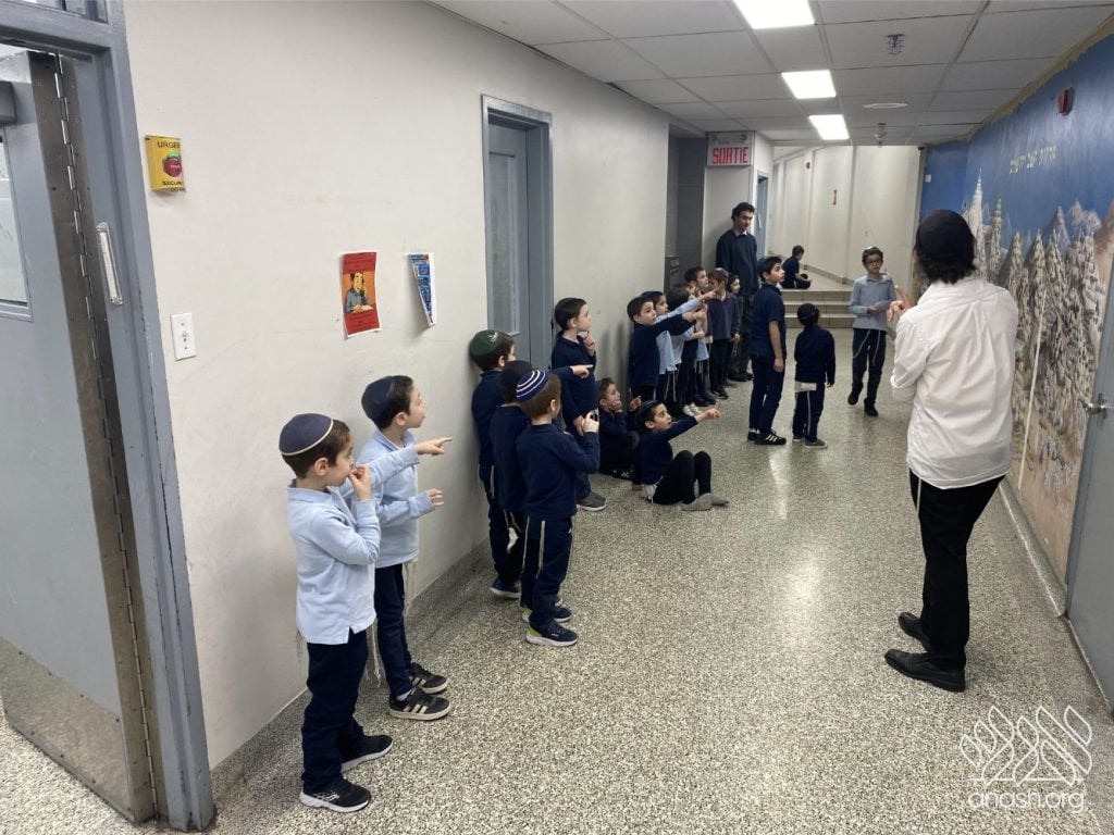 On Tuesday, 24 Teves, our lunchroom was transformed into a “Tanya Poster Gallery.” The younger students (Pre-1A – Grade 3) had the special opportunity to tour the exhibit and view the finished masterpieces. We were also honored to host Rabbi Hershel Raskin, who joined us as the official competition judge to review the impressive work.
