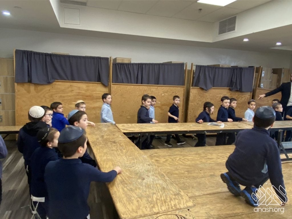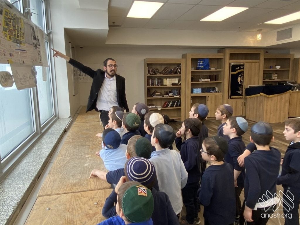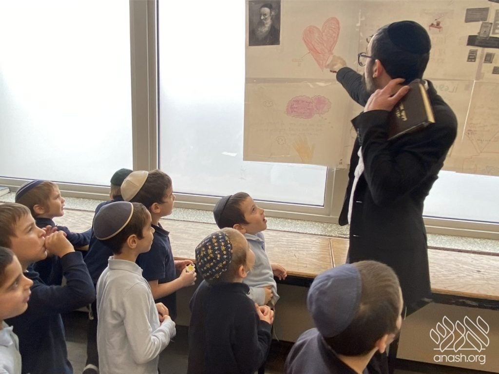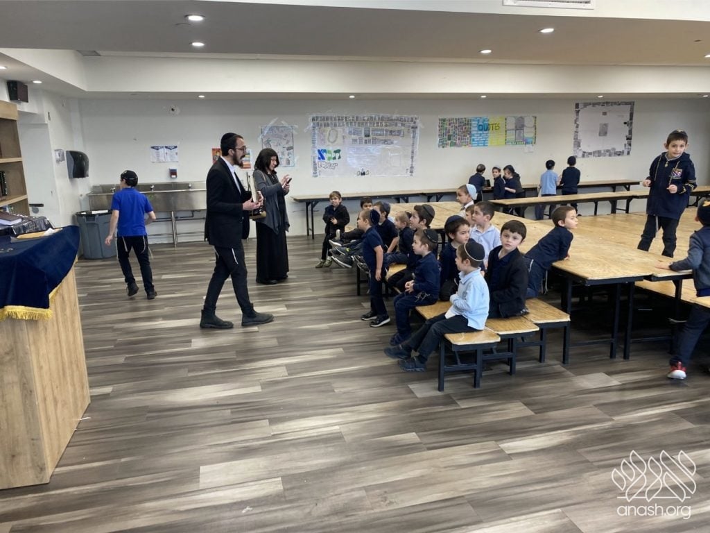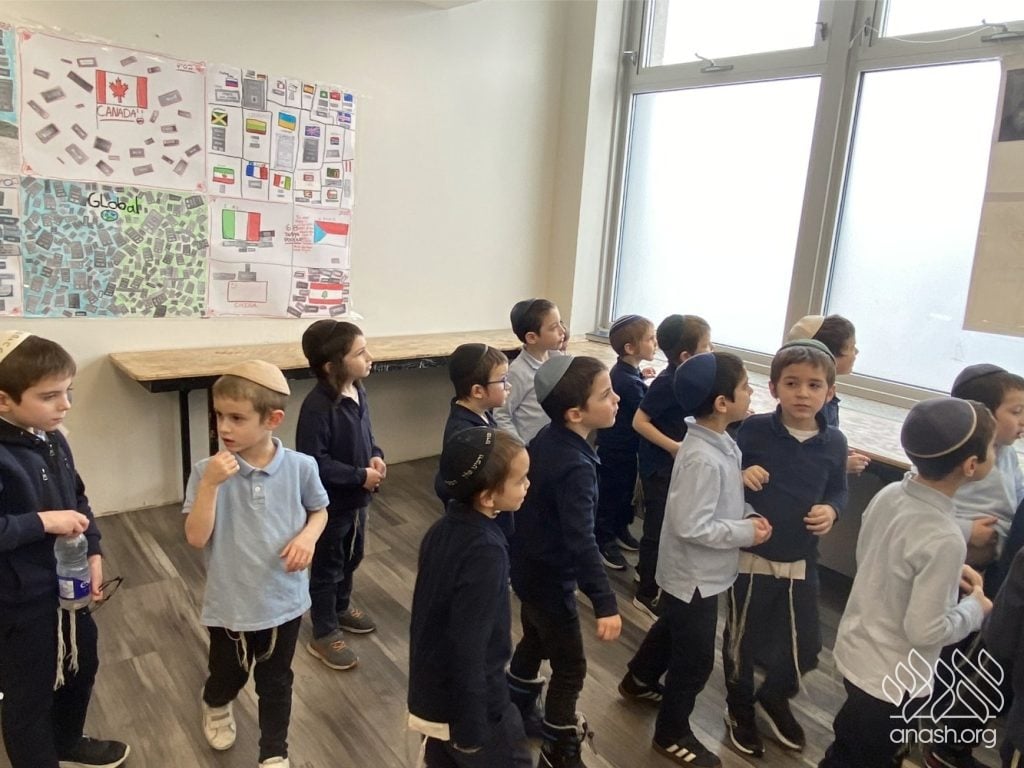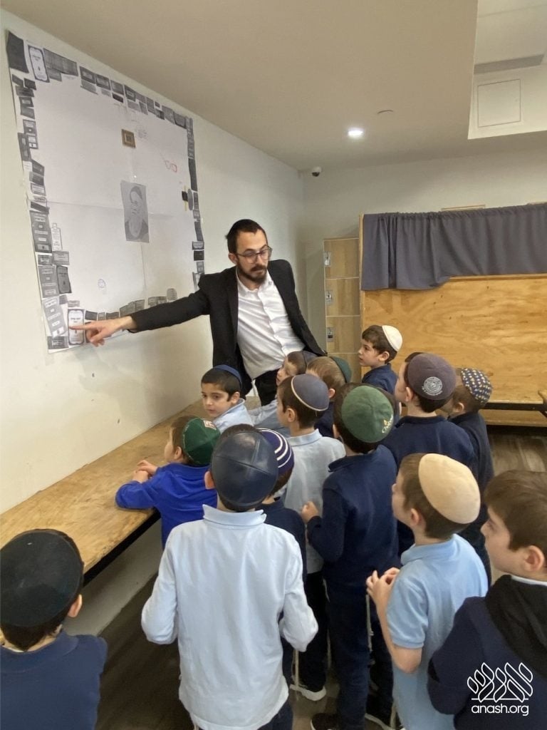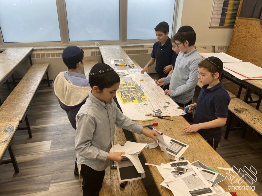 On Tuesday, 24 Teves, our lunchroom was transformed into a “Tanya Poster Gallery.” The younger students (Pre-1A – Grade 3) had the special opportunity to tour the exhibit and view the finished masterpieces. We were also honored to host Rabbi Hershel Raskin, who joined us as the official competition judge to review the impressive work.