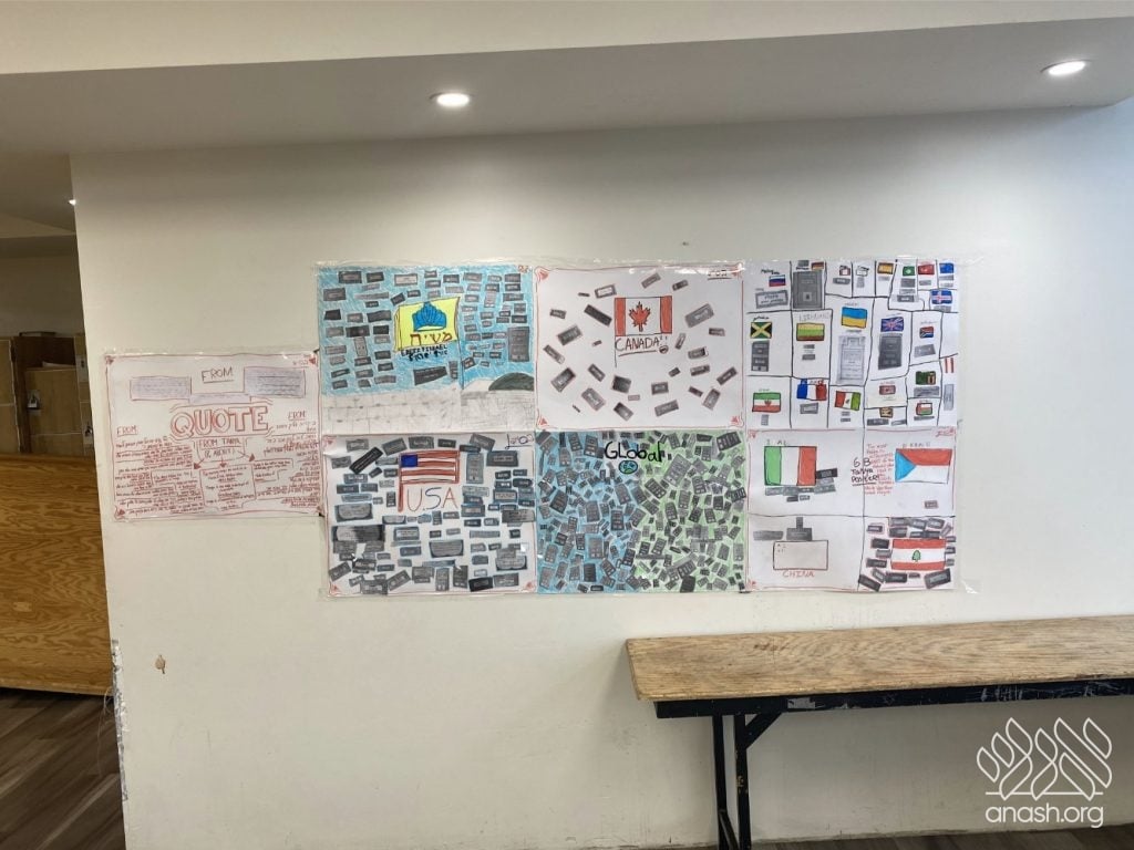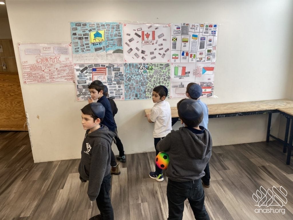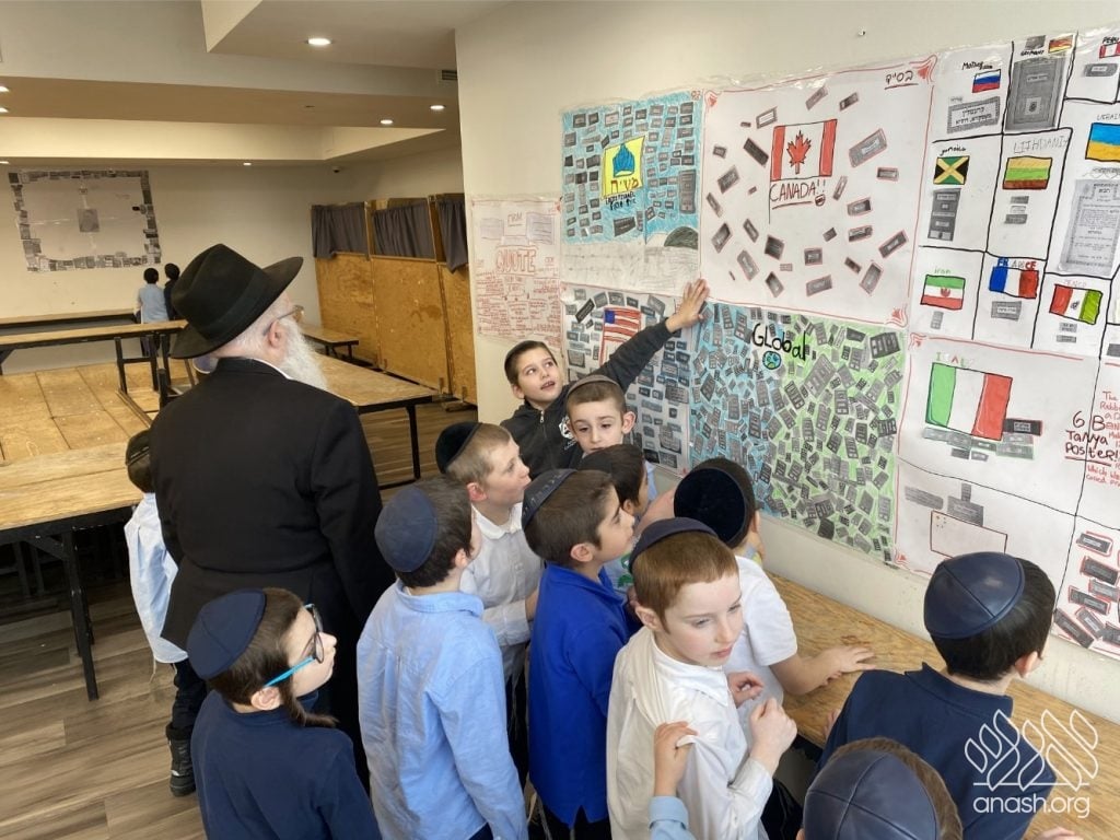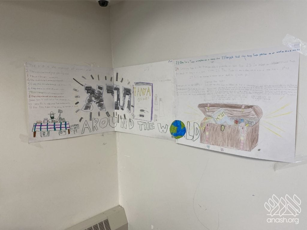 The students were tasked with two main objectives to bring their class posters to life. First, they hunted for “One-Liners,” powerful quotes from the Tanya itself or from Rebbeim and Chassidim that highlight the greatness of the sefer. Second, they reached out across the globe, collecting photos of the Tanya’s title page printed in diverse locations. The response was incredible, with submissions pouring in from everywhere – spanning from JFK Airport all the way to Abu Dhabi!