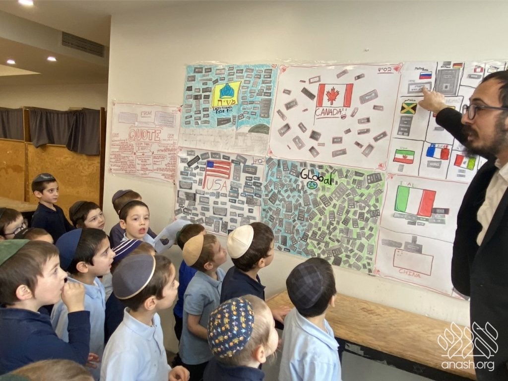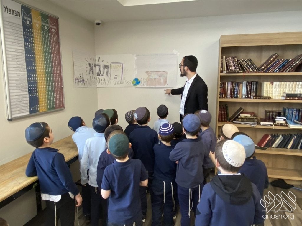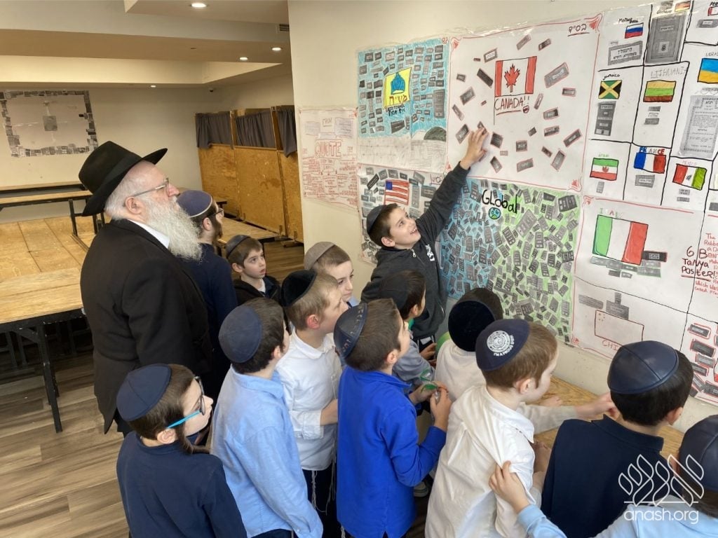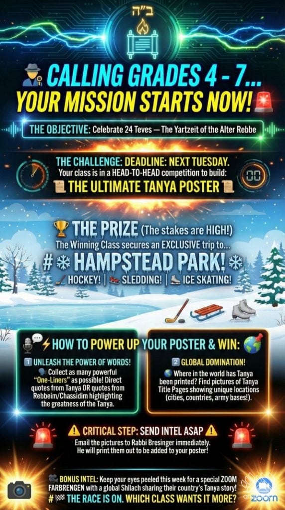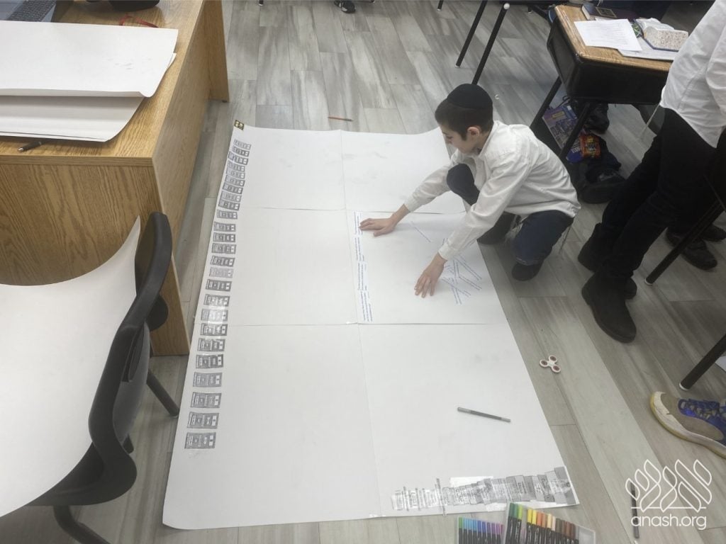 The students were tasked with two main objectives to bring their class posters to life. First, they hunted for “One-Liners,” powerful quotes from the Tanya itself or from Rebbeim and Chassidim that highlight the greatness of the sefer. Second, they reached out across the globe, collecting photos of the Tanya’s title page printed in diverse locations. The response was incredible, with submissions pouring in from everywhere – spanning from JFK Airport all the way to Abu Dhabi!