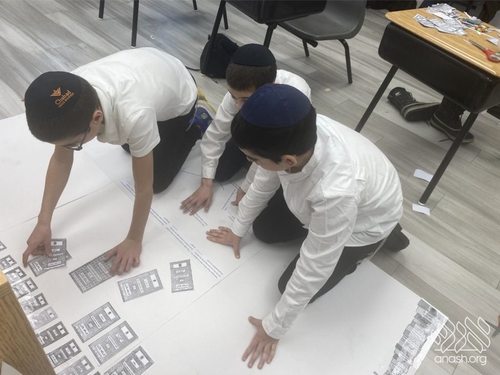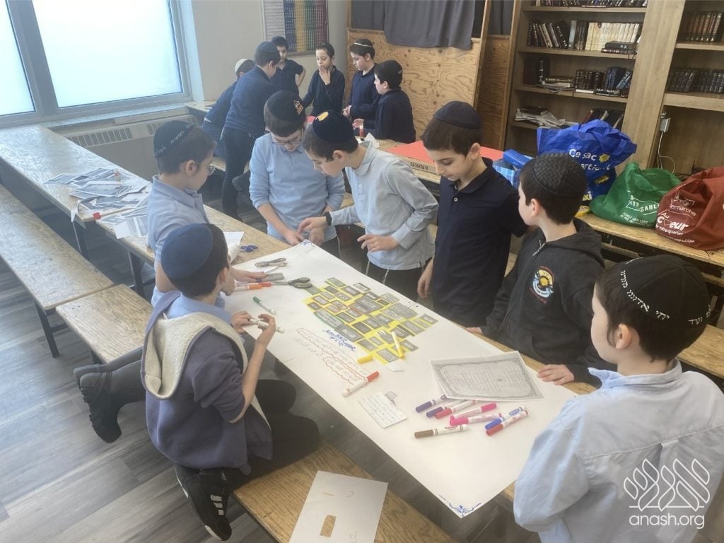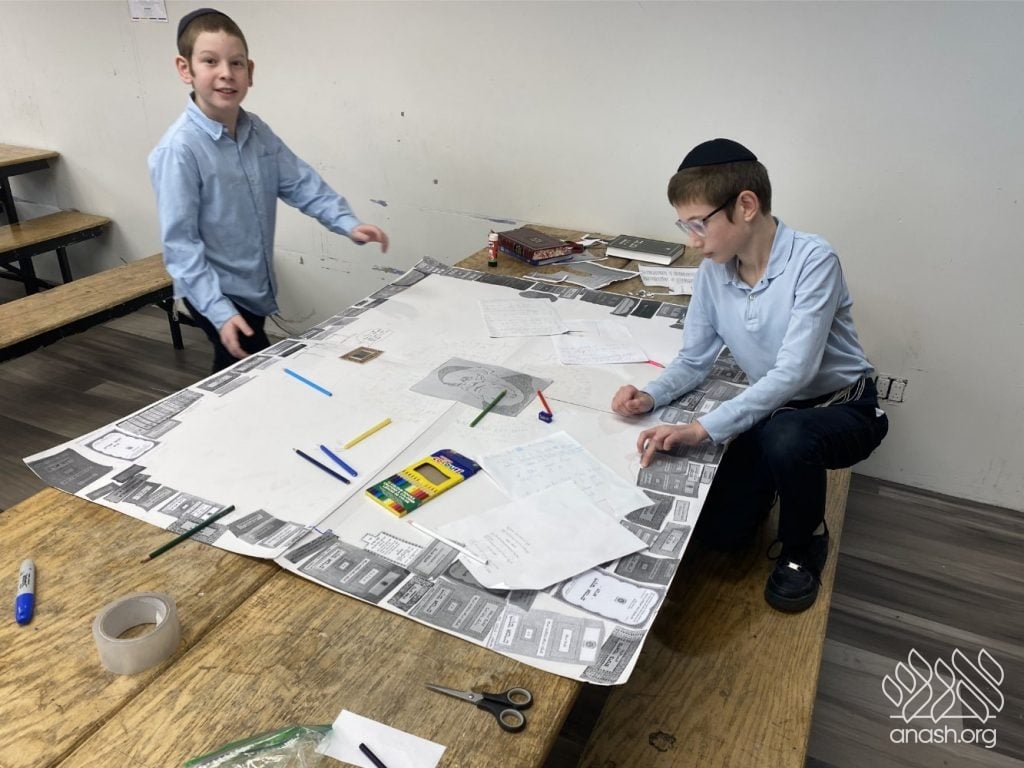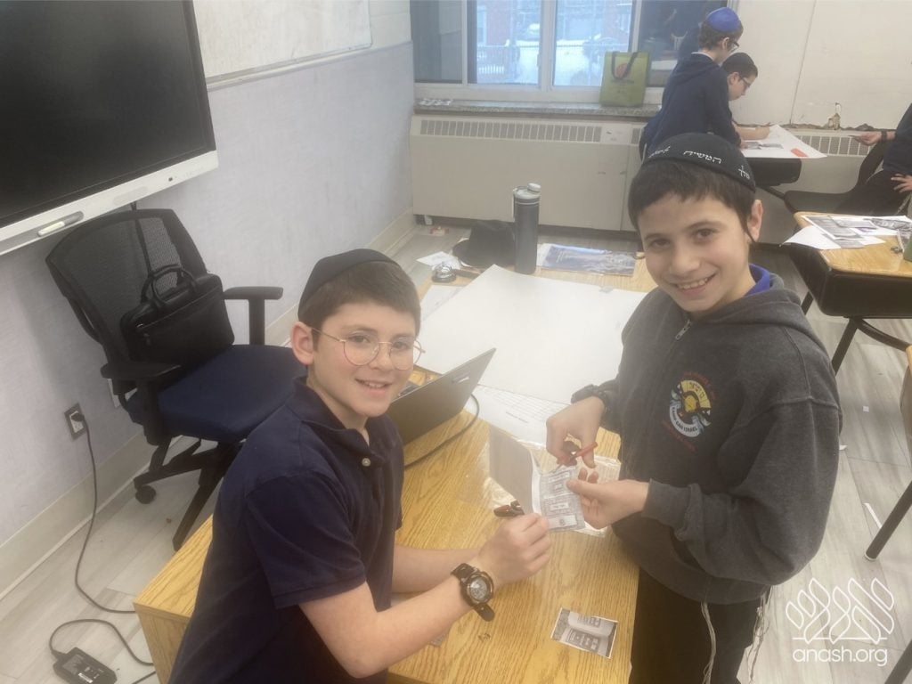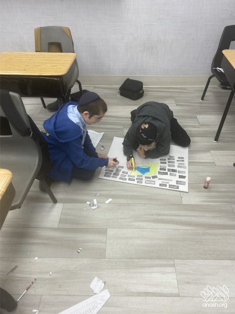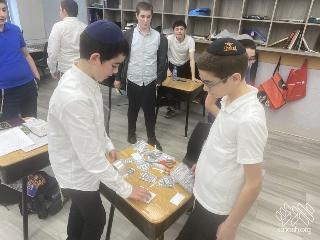 The excitement went far beyond paper and glue. Throughout these two weeks, the boys “traveled” the world virtually, joining exclusive live Zoom Farbrengens with Shluchim from the USA, Rome, Morocco, Holland, France, Austria, Hungary, Mexico, and England. These Shluchim shared fascinating stories about printing the Tanya in their respective countries, giving the students a deeper appreciation for the global reach of Chassidus.