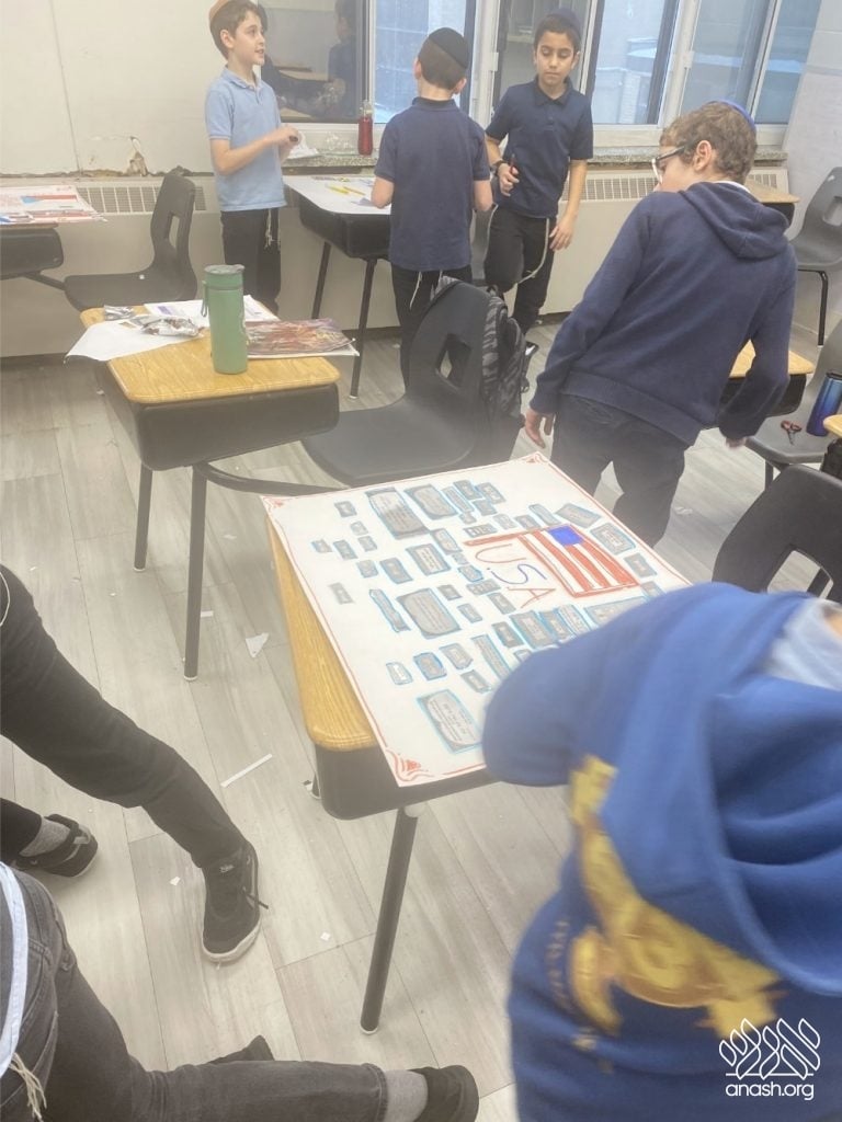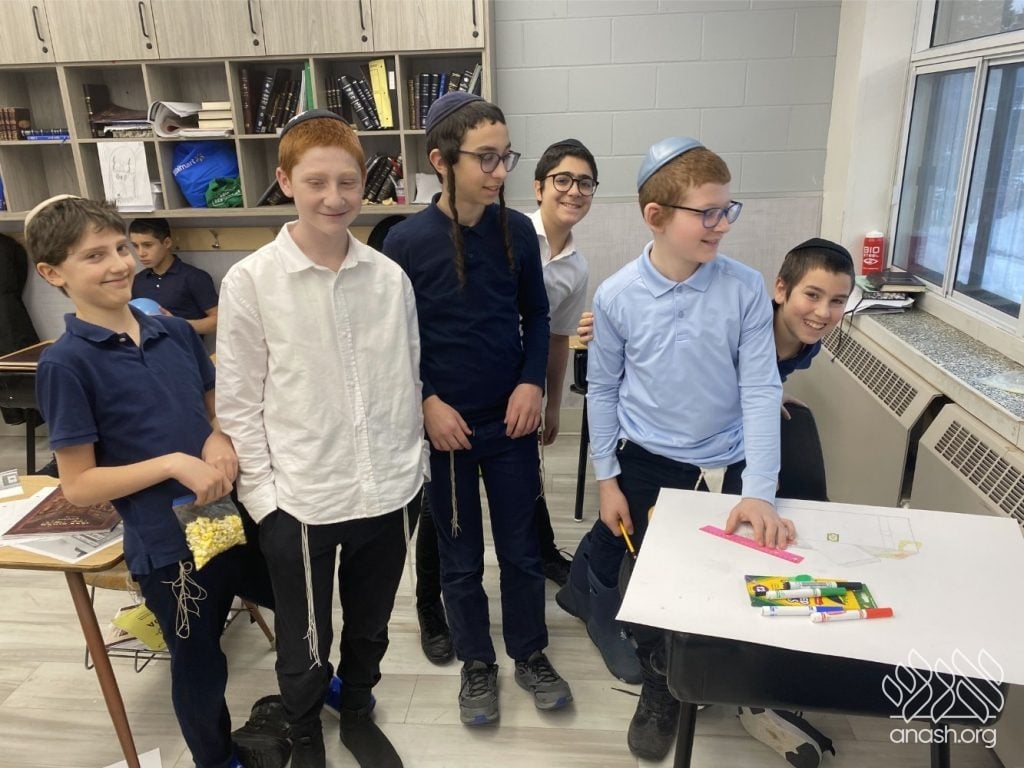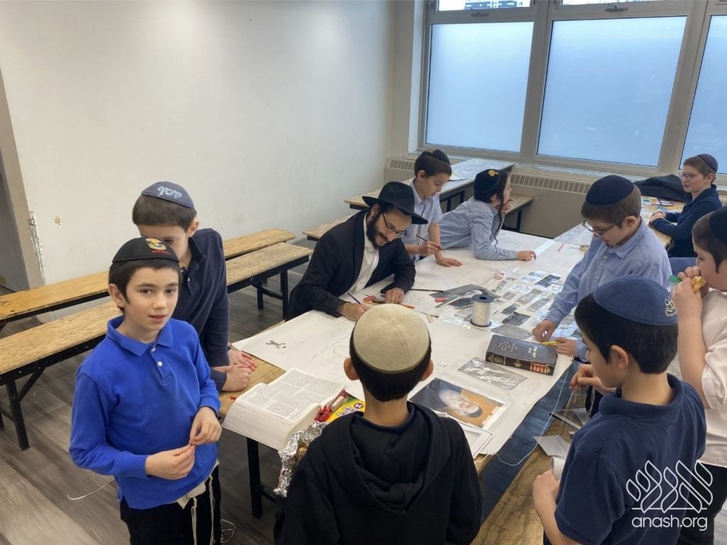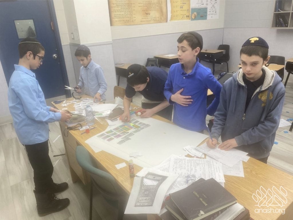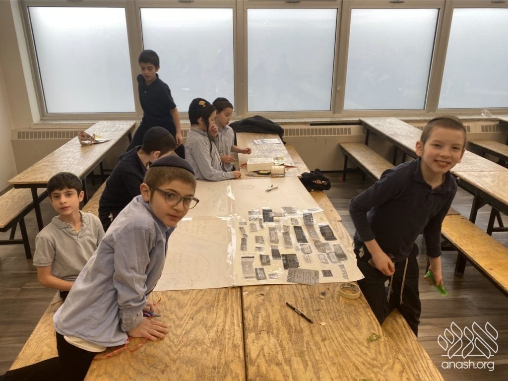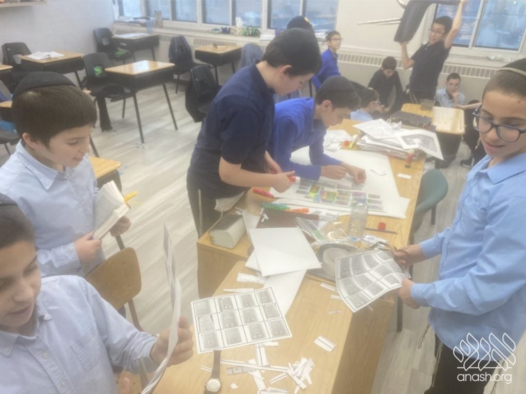 The excitement went far beyond paper and glue. Throughout these two weeks, the boys “traveled” the world virtually, joining exclusive live Zoom Farbrengens with Shluchim from the USA, Rome, Morocco, Holland, France, Austria, Hungary, Mexico, and England. These Shluchim shared fascinating stories about printing the Tanya in their respective countries, giving the students a deeper appreciation for the global reach of Chassidus.